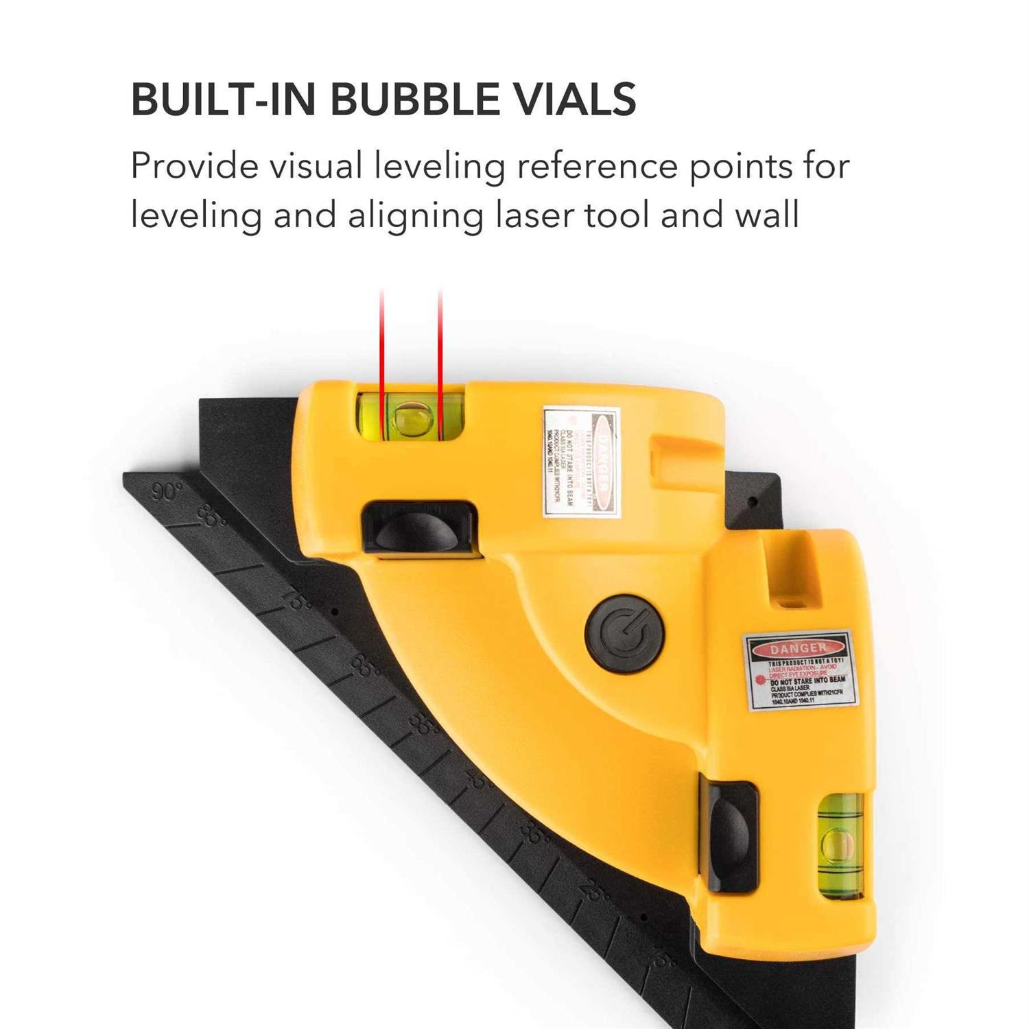 Handy and compact laser level tool that can generates two lines on the floor, wall or other surface at 90 degree angles to help you square, align and angle at 90 degrees for surface layout including tile, picture, stone, brick, carpet, hardwood flooring and more Double Bubble – A double leveling bubble and a laser level to provide accurate alignment of flat or straight Simple one button operation powers two perpendicular lines (90 degrees) on and off, Class IIIa Laser product, Max output: 5mW Two suction cups allow the level square to be mounted onto the smooth surfaces(like clean glass and ceramic tile) alignment guide for 90-degree layout-calculate and turning angles in 5-degree increments Projects horizontal and vertical chalk lines on any surface up to 52ft(16m). Provides precision and accuracy to within 1 inch per 100 feet. Perfect for woodworking ,stair starting board, shelves, shelf, molding, tiled or any other work that requires precise alignment QWORK