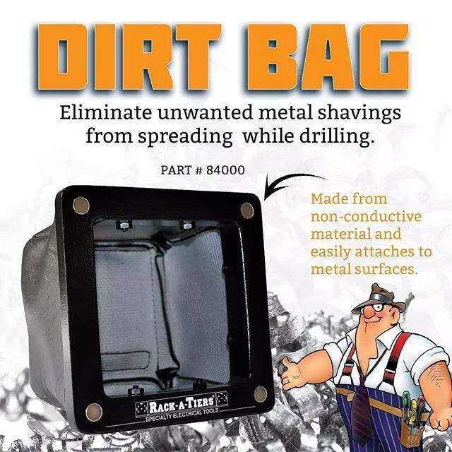 The dirt bag is specifically designed to eliminate unwanted metal shavings from spreading throughout a panel. A simple, portable tool the will save you time and headaches down the road. Features ensures that your safety is 1 easily attaches to metal surfaces made from non-conductive material anti-static liner fits almost anywhere not to be used on live panels.