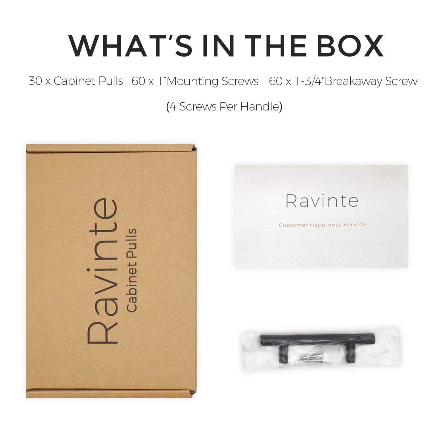 Ravinte 30 Pack 5 inch Cabinet Pulls Matte Black Stainless Steel Kitchen Drawer Pulls Cabinet Handles 5 InchLength