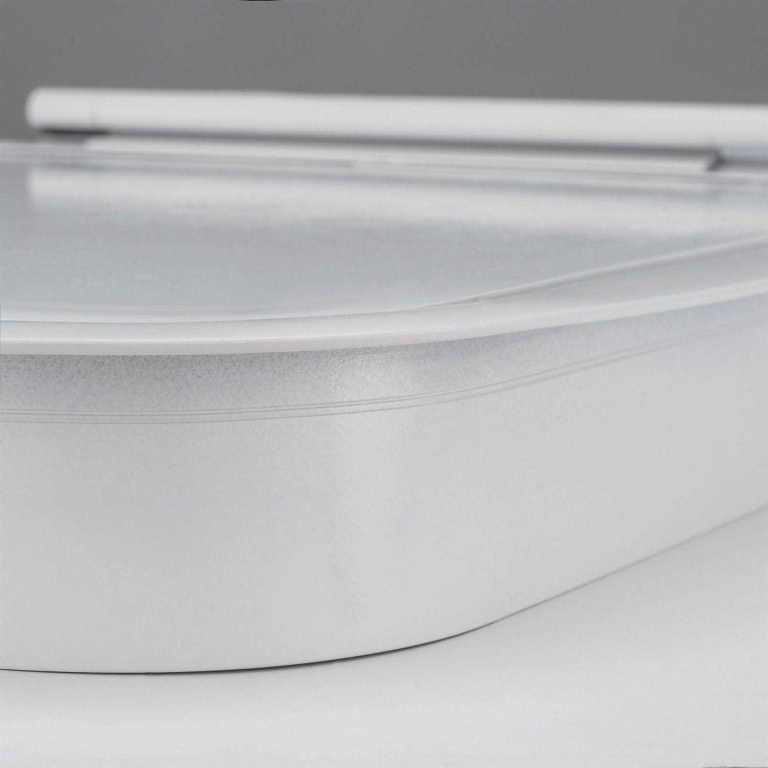 - Made of white fiberglass with a core depth of 3/4”, there is no metal housings to deal with.