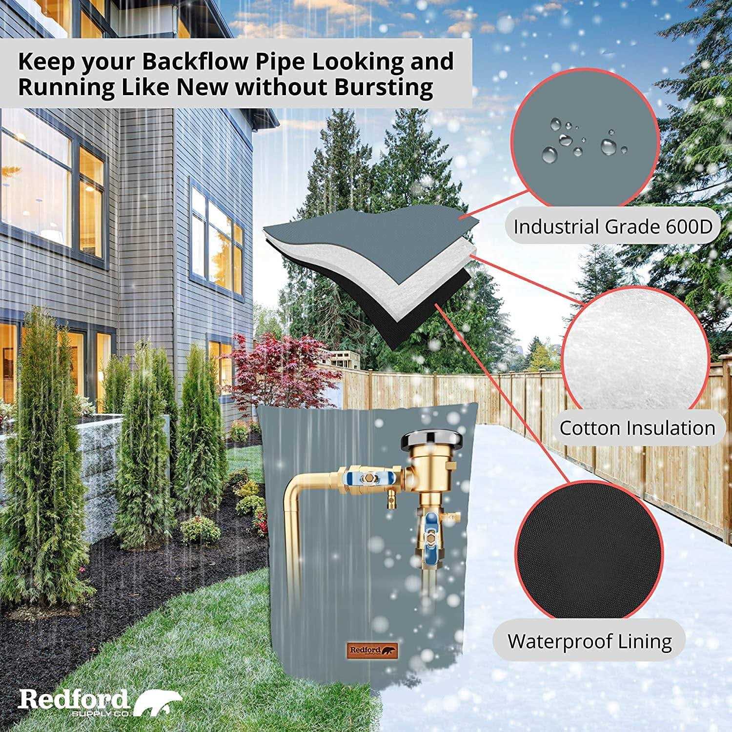 Redford Supply Co. Cold Snap (5°F) Double Wall Cotton Backflow Preventer Insulation Cover – Sprinkler Covers for Outside, Well Head Cover, Insulated