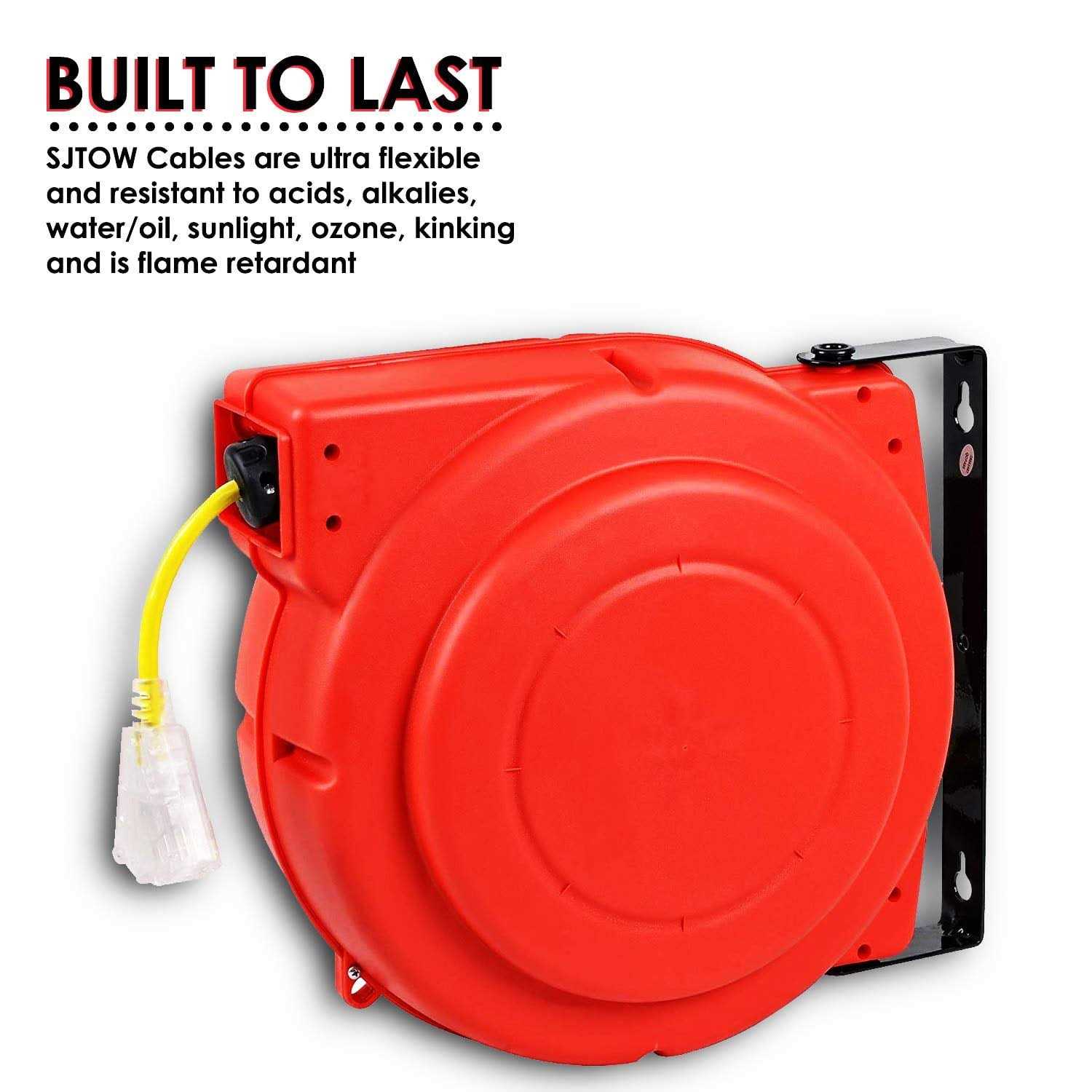 This Retractable Extension Cord Reel by ReelWorks features a 12AWG x 80′ FT, 3 grounded outlets and maximum 15A, making it ideal for all DIY and professional settings. It is commercial grade and built to last.
