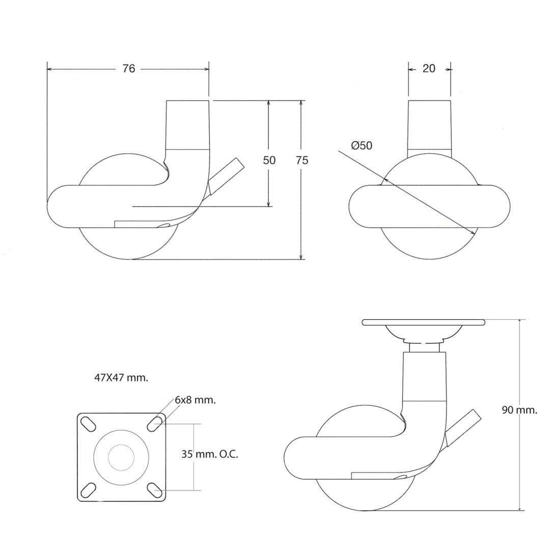 - Includes one caster with mounting plate