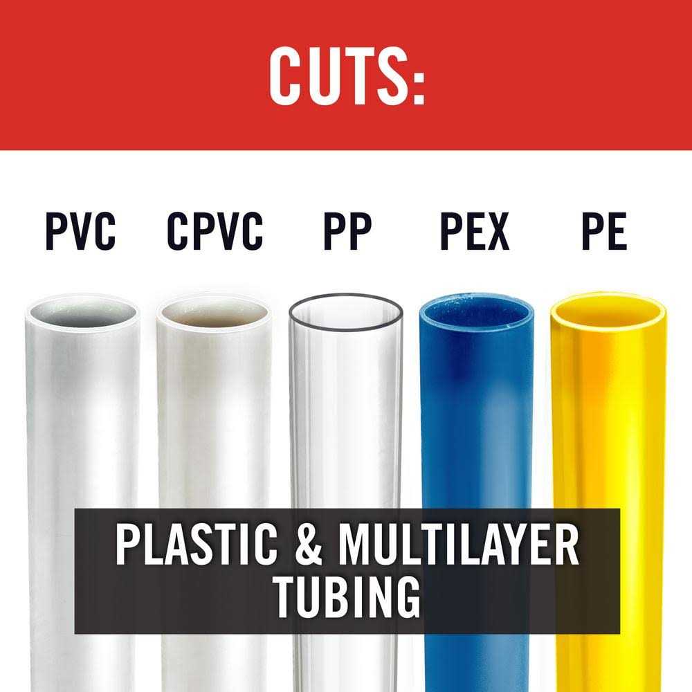 • Designed for cutting plastic (PVC, CPVC, PP, PEX, PE, rubber hose) and multilayer tubing