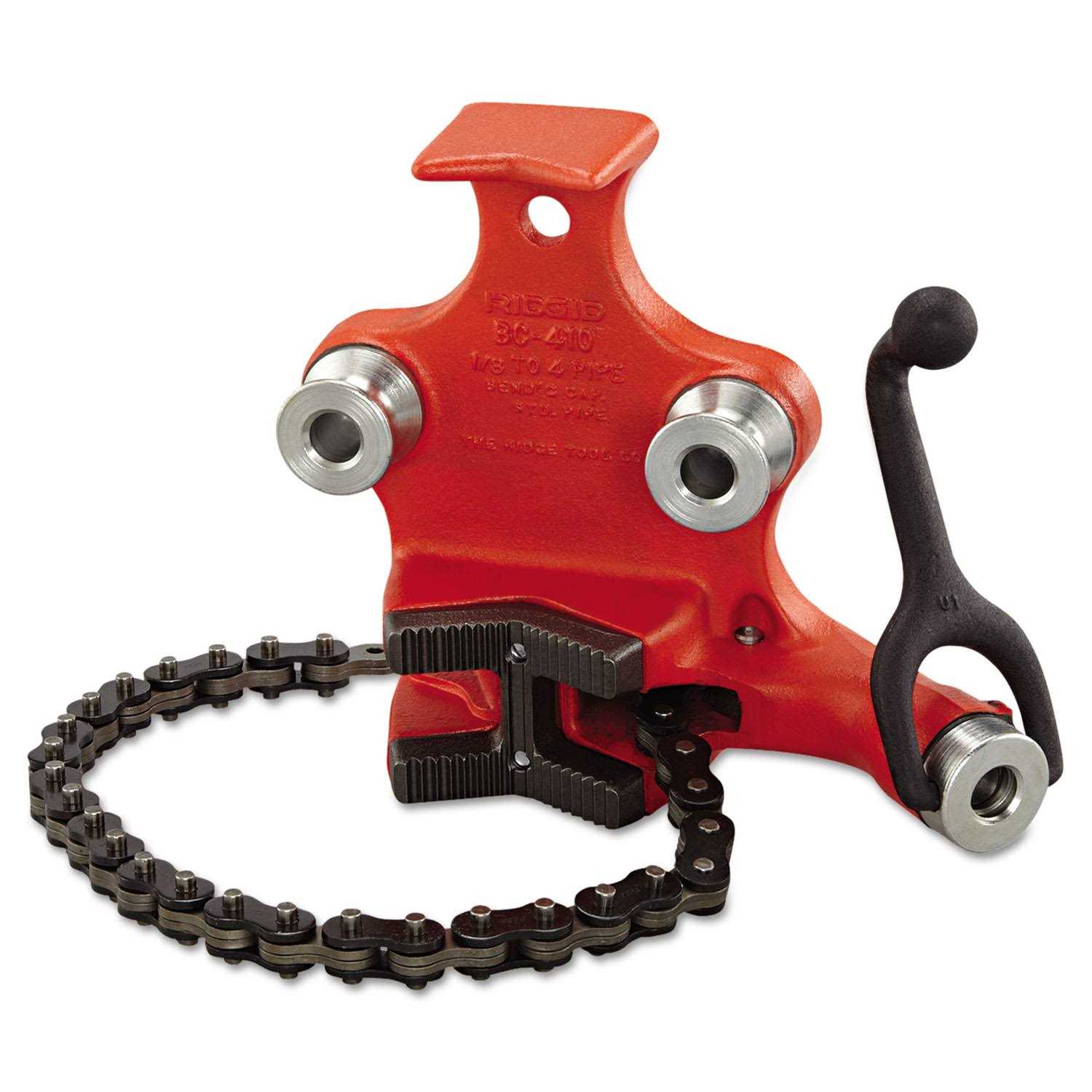 Ridgid BC410 Top Screw Bench Chain Vice 6-100mm Capacity 40195These RIDGID Top Screw Bench Chain Vices are fitted with a crank handle that is firmly anchored to the base of the vice. It also features a pipe rest and bender. The heavy-duty cast iron base has jaws especially designed for gripping and bending pipes.About Ridgid: The inventor of the modern pipe wrench, Ridgid has been designing and crafting industry-leading products since the 1920’s. Ridgid’s mission is to build tools for the world’s expert tradespeople – those who know the limits of the job and how to exceed them. Why do so many professionals choose Ridgid tools? The answer is simple, trust. Millions of Ridgid tools go to work every day in plants, on construction sites and in countless other harsh environments. These tools operate in extremes of heat and cold, withstand dirt and mud, and perform reliably day in and day out. Ridgid toolsare known throughout the world as industry-leading products that allow professionals to complete jobs more quickly and reliably. Ridgid – Built For Those Who Know!