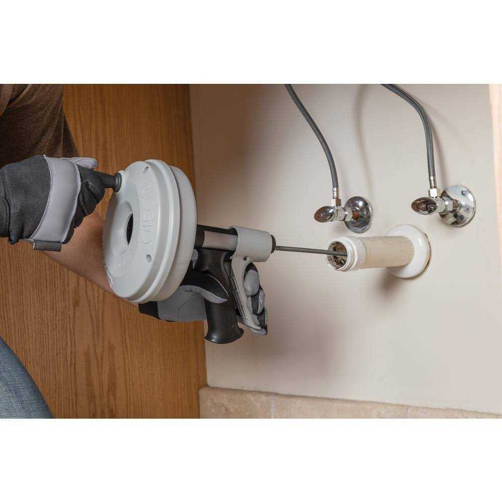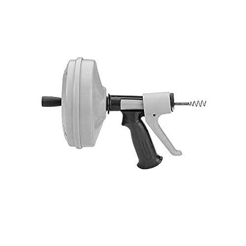 The new and improved Kwik-Spin+ from Ridgid is an excellent choice for cleaning purposes. The patented Autofeed trigger of this drain auger automatically feeds and retracts the cable as the drum turns. This Autofeed trigger of this Ridgid auger makes the job quick and simple. Get this drain cleaning tool that cleans drain lines from ” up to 1 ” in diameter. The cable is positively retained in the Ridgid drain cleaner drum to prevent cable pullout. A lightweight polyethylene construction of this sink clog cleaner will not dent or rust. Use this hand tool as a drain cleaner for small drain lines in showers, a plumbing drain cleaner, a sink drain cleaner, a bathtub drain unclogger, a drain opener, a drain unclogger, or a drain clog cleaner. Bid bye to a clogged drain sink with this plastic drum auger.