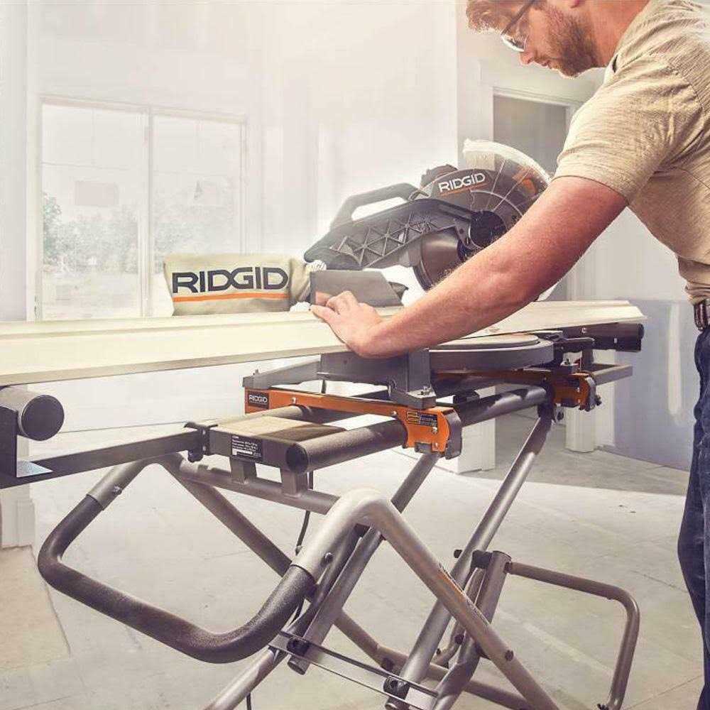 The refurbishing process includes functionality testing basic cleaning inspection and repackaging. It achieves ultimate user comfort with a lightweight design weighing in at only 57lbs and featuring a carrying capacity of 400lbs. Plus there’s no need to worry about sliding or compound miter saw compatibility as the improved Ridgid MSUV has a universal quick release mounting bracket design that’s compatible with all sliding and compound miter saws. And the secondary lock helps to ensure a secure fit!