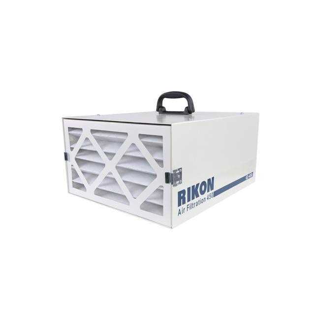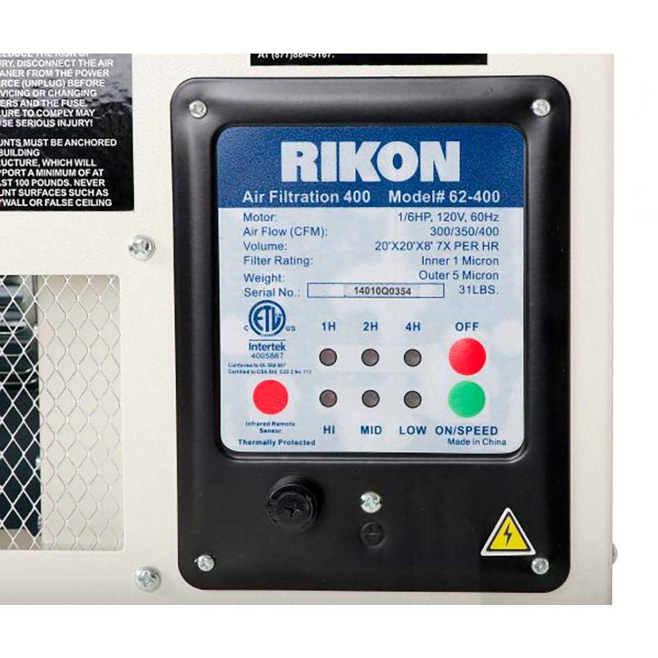 The Rikon Air Filtration System is designed for smaller workshops that measure up to 20x20x8 feet for cleaning and circulating air up to 7 times per hour. System comes with a remote that will control three speeds and three timer settings before it automatically shuts off. The Rikon Air Filtration System ¼ Hp motor is very quiet and can be operated directly or with the remote control.