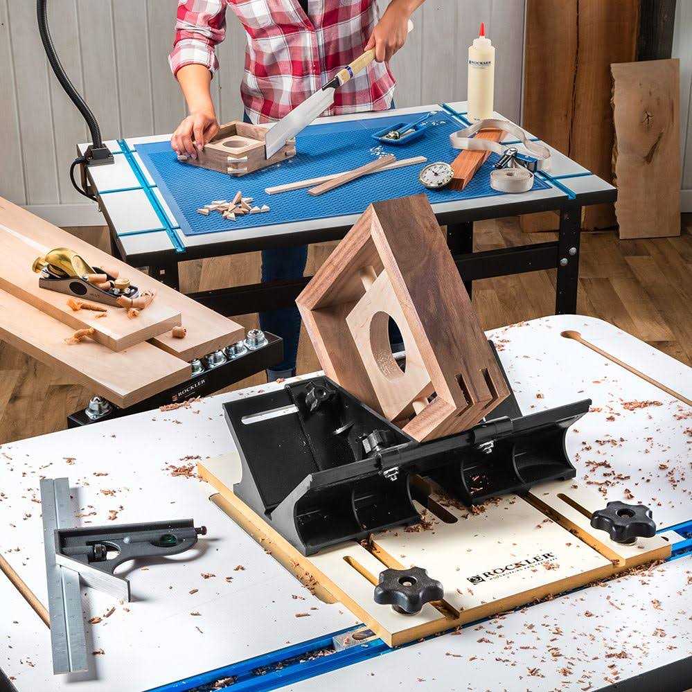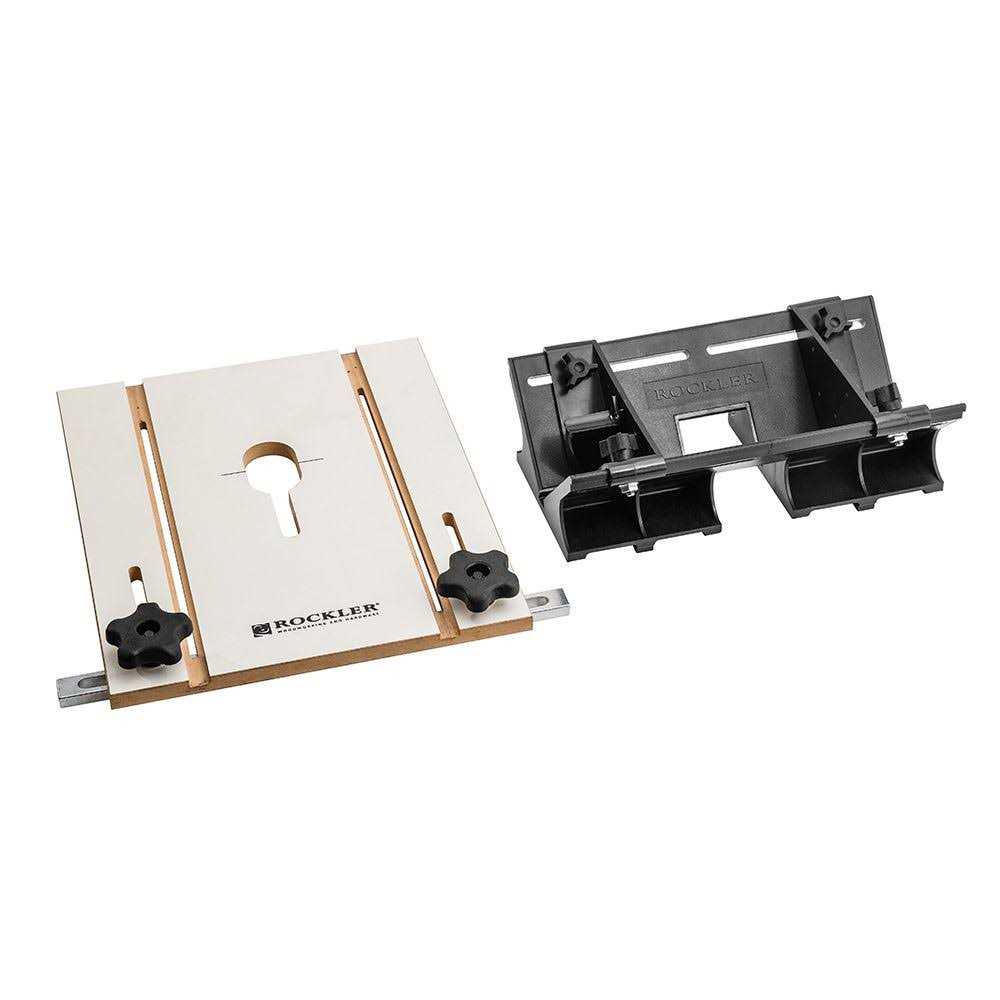 Splines are used in woodworking to provide strength or decoration. Rockler’s Router Table Spline Jig is an easy way to do splines in mitred corners, by holding the already constructed mitred box or frame at 45° to the router table in a cradle. The cradle can only move backwards and forwards, over a straight or dovetail router to create a groove. Designed to suit a wide range of router tables, for mitre slots 83mm and 174mm from centre of the bit. Featuring fences to hold the boxes in the right place during the cut, these can be removed for larger jobs.
