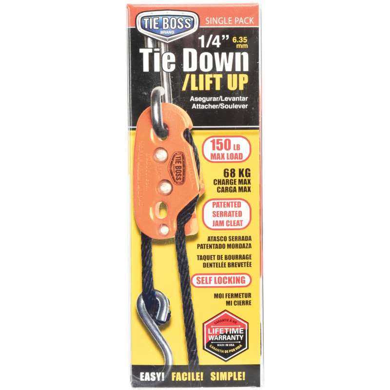 Tie Boss is the world’s easiest tie down! Safe, fast and secure, Tie Boss makes it easy to lift up or tie down almost any load with an easy one hand lock and release.