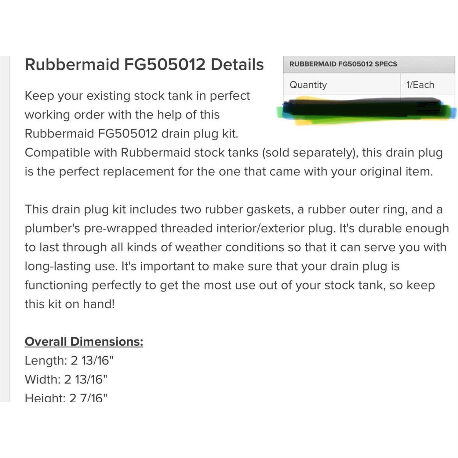 Rubbermaid Plug Stock Tank Drain