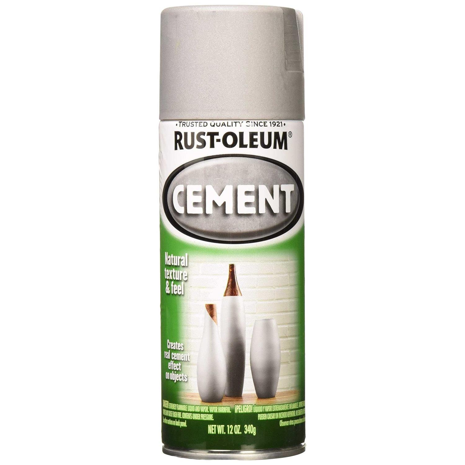 Rust-Oleum Cement Spray Paint allows you to produce a faux cement finish for your decorative projects without the use of heavy, messy concrete mixes. Decorative finish can be applied to nearly any surface for a quick transformation with a trendy cement finish. Showcase your creativity with fresh cement accents made with an easy to use aerosol spray can.