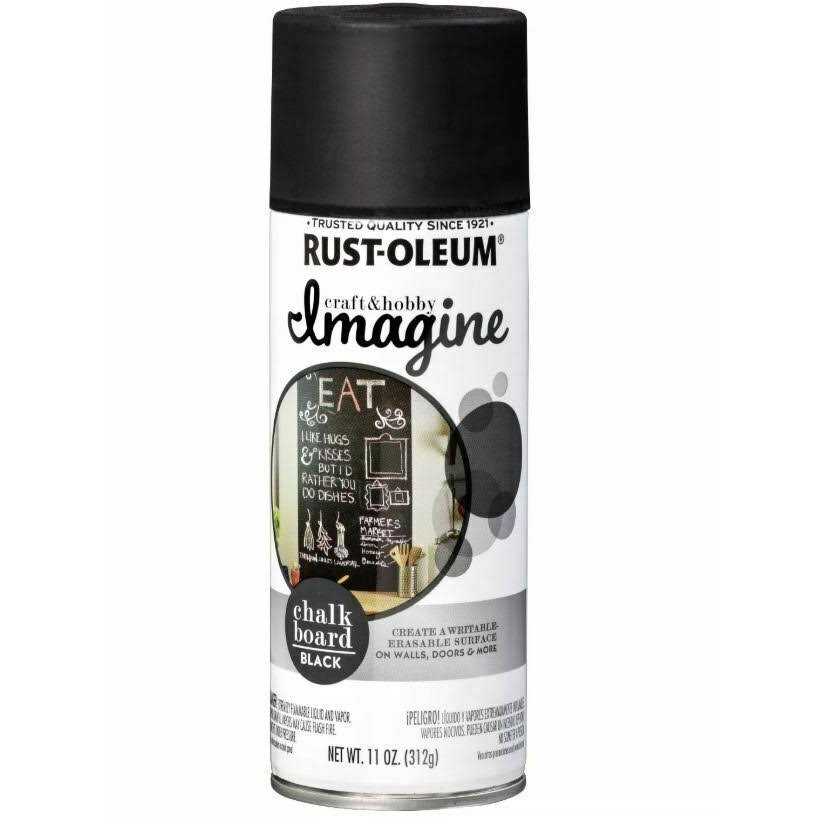 For indoor use only on metal, wood, plastic, hardboard, glass or paperboard Formulated to be scratch resistant and erase easily after use Finish creates a usable chalkboard surface For best results allow paint to dry for 24 hours and prep surface by rubbing side of chalk over entire surface and erase Paint dries tack free in 20 minutes, can be handled in 1 hour and covers up to 7 sq. ft. Rust-Oleum Imagine Chalkboard Spray Paints are designed to convert everyday home surfaces into a fun and functional chalkboard. Smooth finish is scratch resistant for extended durability while still allowing for easy erasing after each use. Available in both black and clear finishes for maximum project flexibility. For indoor projects only.