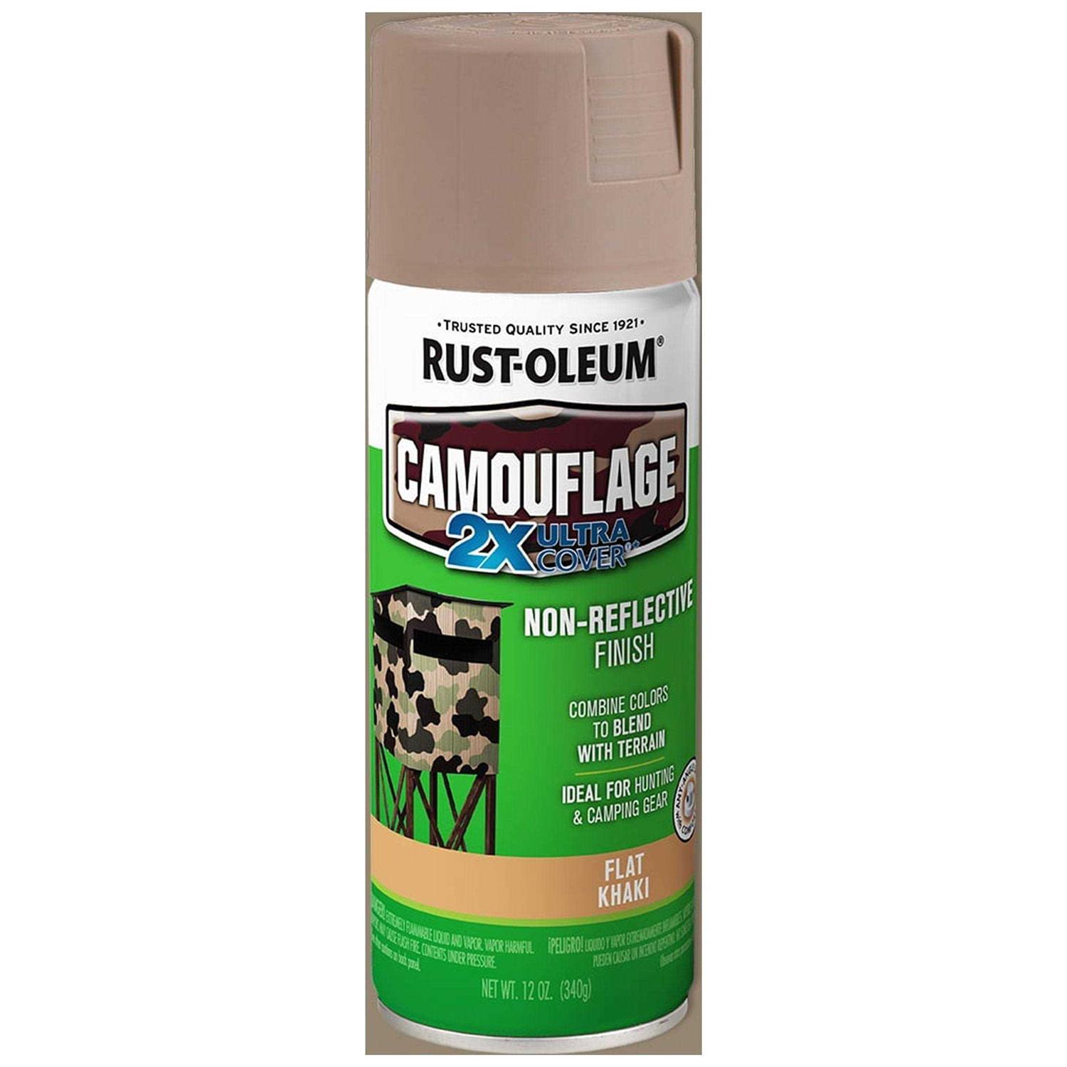 Rust-Oleum Camouflage 2X Ultra Cover 12 oz will give your projects a professional-looking tone. It provides a non-reflective finish for hunting and sporting equipment so you can blend smoothly with environment. Various colors of the Rust-Oleum camouflage paint can be combined in a variety of patterns to blend with your terrain. It’s ideal for use on vehicles, tree stands, decoys, blinds, boats and equipment. For a real life pattern, use leaves and twigs as stencils with the indoor/outdoor paint. Apply a base coat of color, lay the leaves and twigs randomly over the object you are painting and spray over the items using three or more colors. This paint is packaged in an aerosol can that is recyclable. It can be used both indoors and outdoors, offering you versatility in where you paint. It will also bond to plastic. Rust-Oleum Camouflage 2X Ultra Cover 12 oz is formulated with double cover technology to provide quality you can rely on.