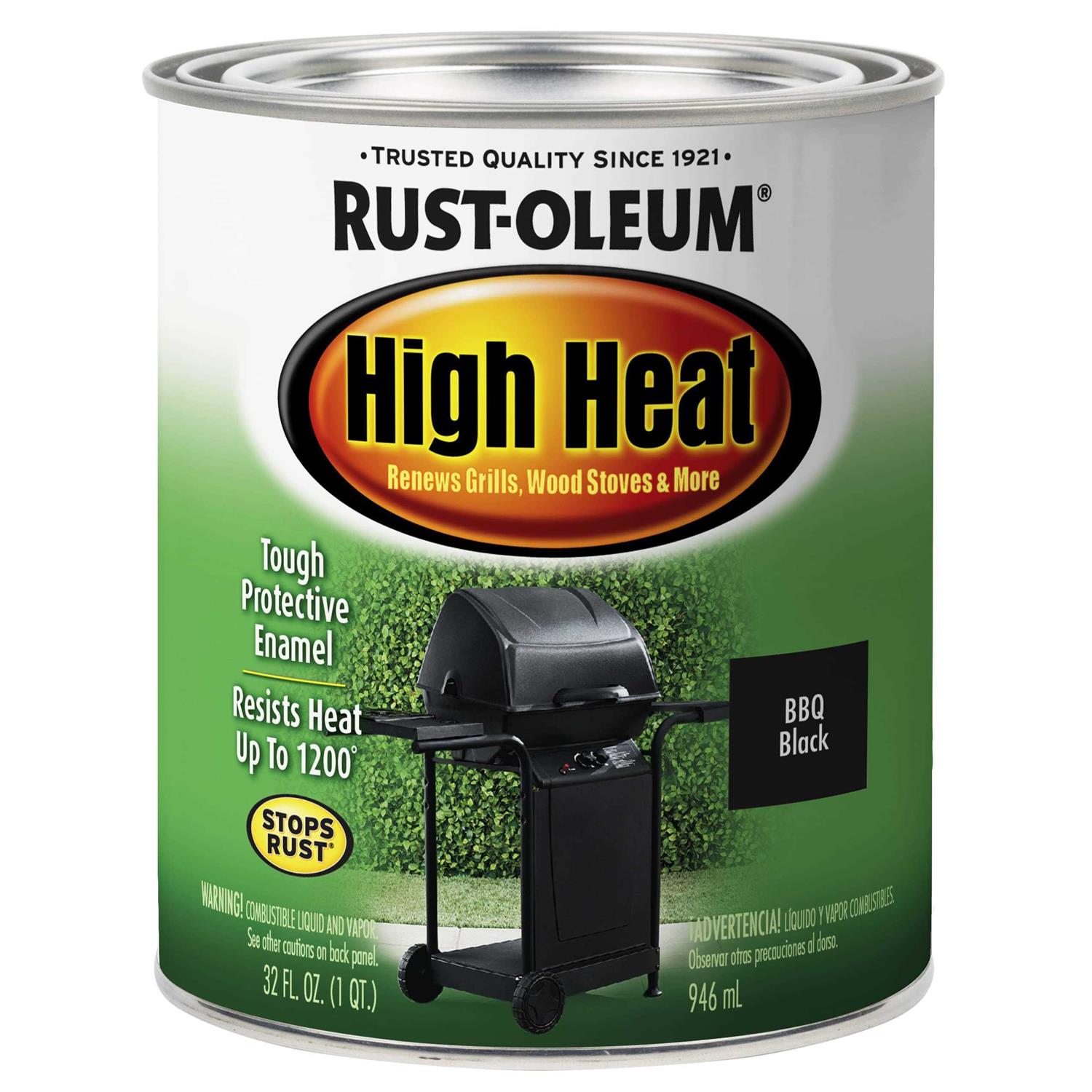 Premium, fast-dry formula offers superior durability and color retention for indoor and outdoor high-heat applications. Rich, satin finish resists up to 1200 F. For use on grills, Wood-Burning stoves, radiators, engines and other metal items. Provides Rust-Oleum stops rust protection against rust and corrosion. For use on grills, Wood-Burning stoves, radiators, engines and other metal items. Rich, satin finish resists up to 1200 F. Premium, fast-dry formula offers superior durability and color retention for indoor and outdoor high-heat applications.