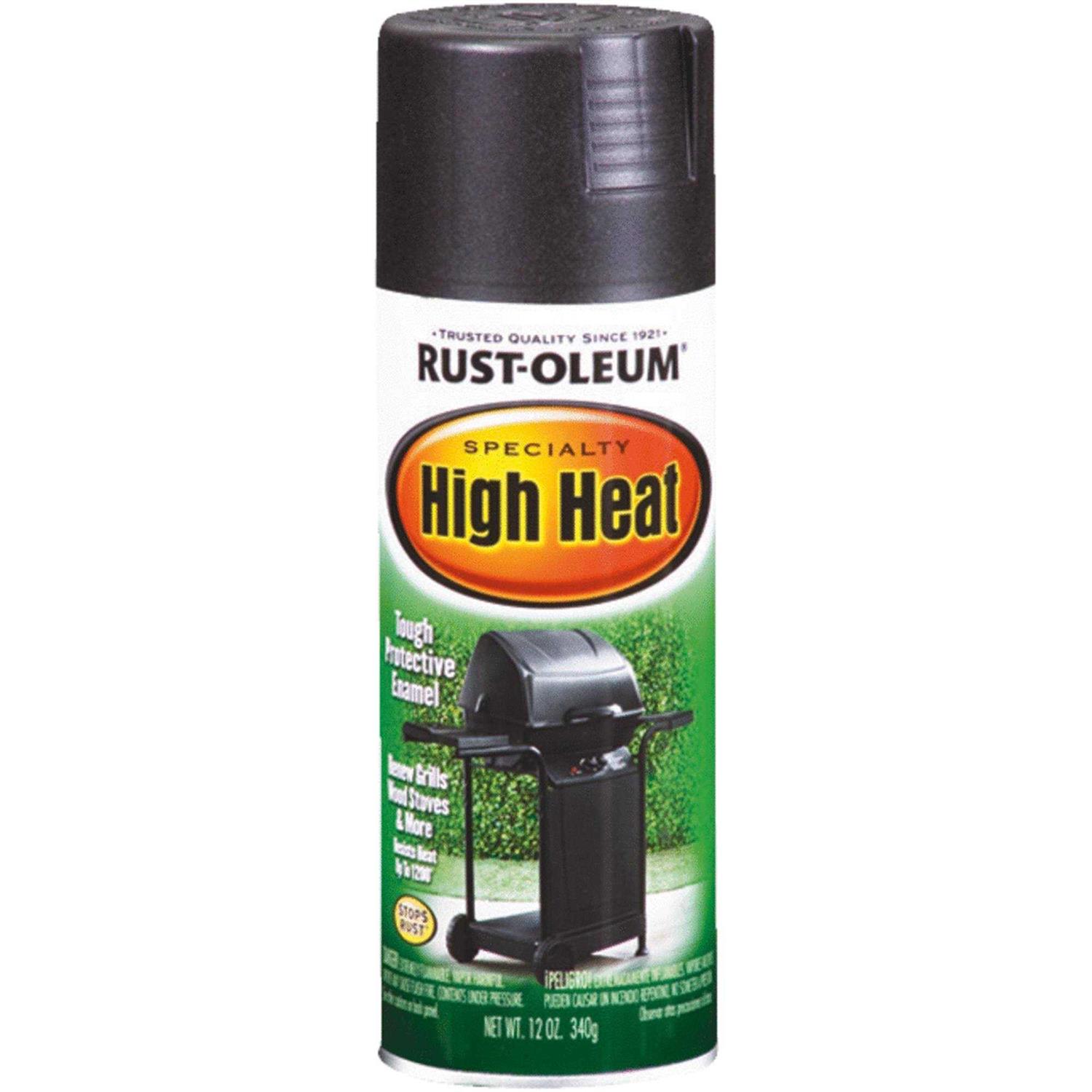 Rust-Oleum’s High Heat Flat Spray Paint is a premium fast drying formula that delivers superior durability and color retention for indoor and outdoor high-heat applications. Rich, satin finish resistas heat up to 1,200 degrees Fahrenheit and is great for use on grills, stoves, radiators, engines and more. Also protects agains rust and corrosion. Heat surface to 300 degrees after paint has dried to cure.