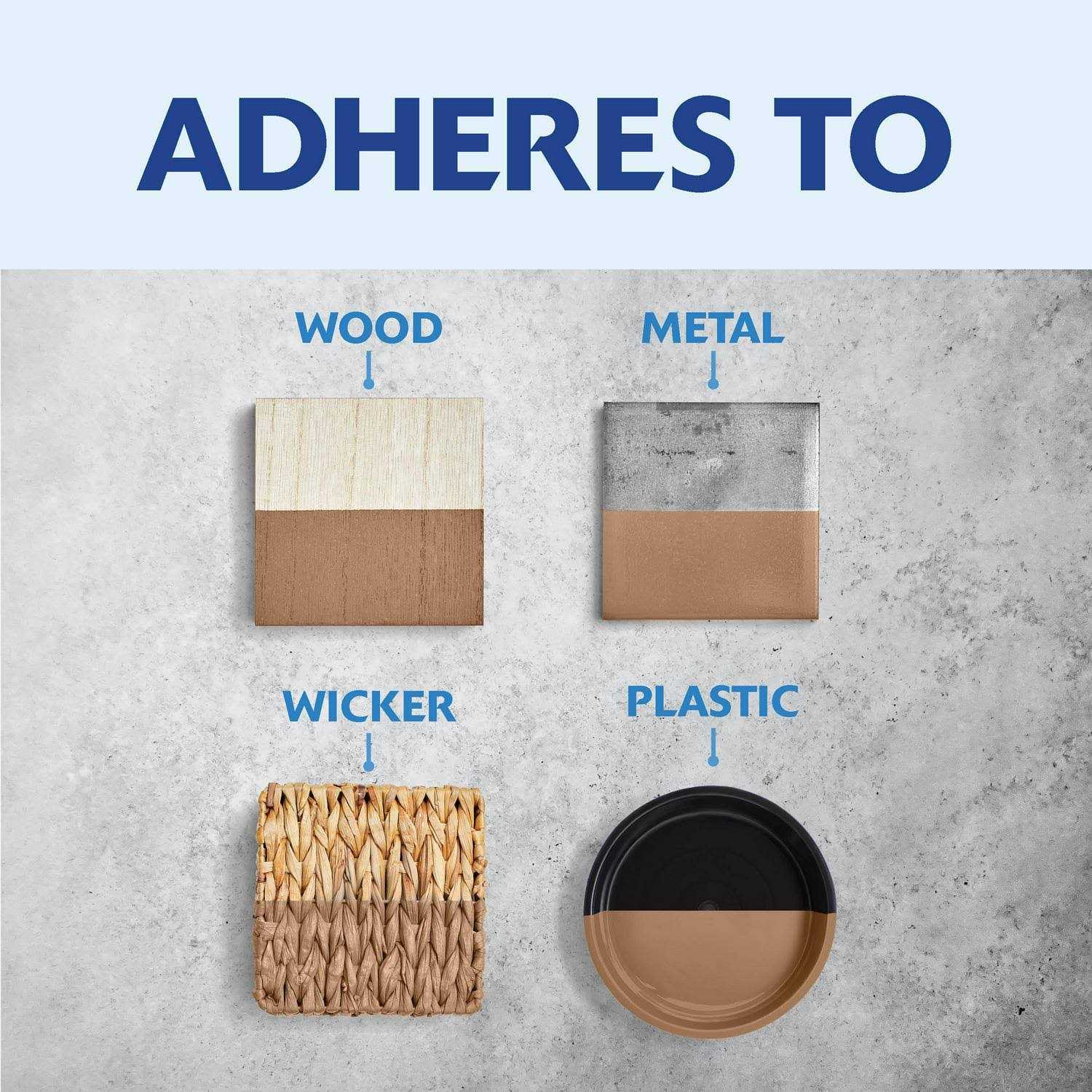 - Ideal for interior/exterior use on virtually any surface including wood, plastic, metal, wicker, plaster, unglazed ceramic and more