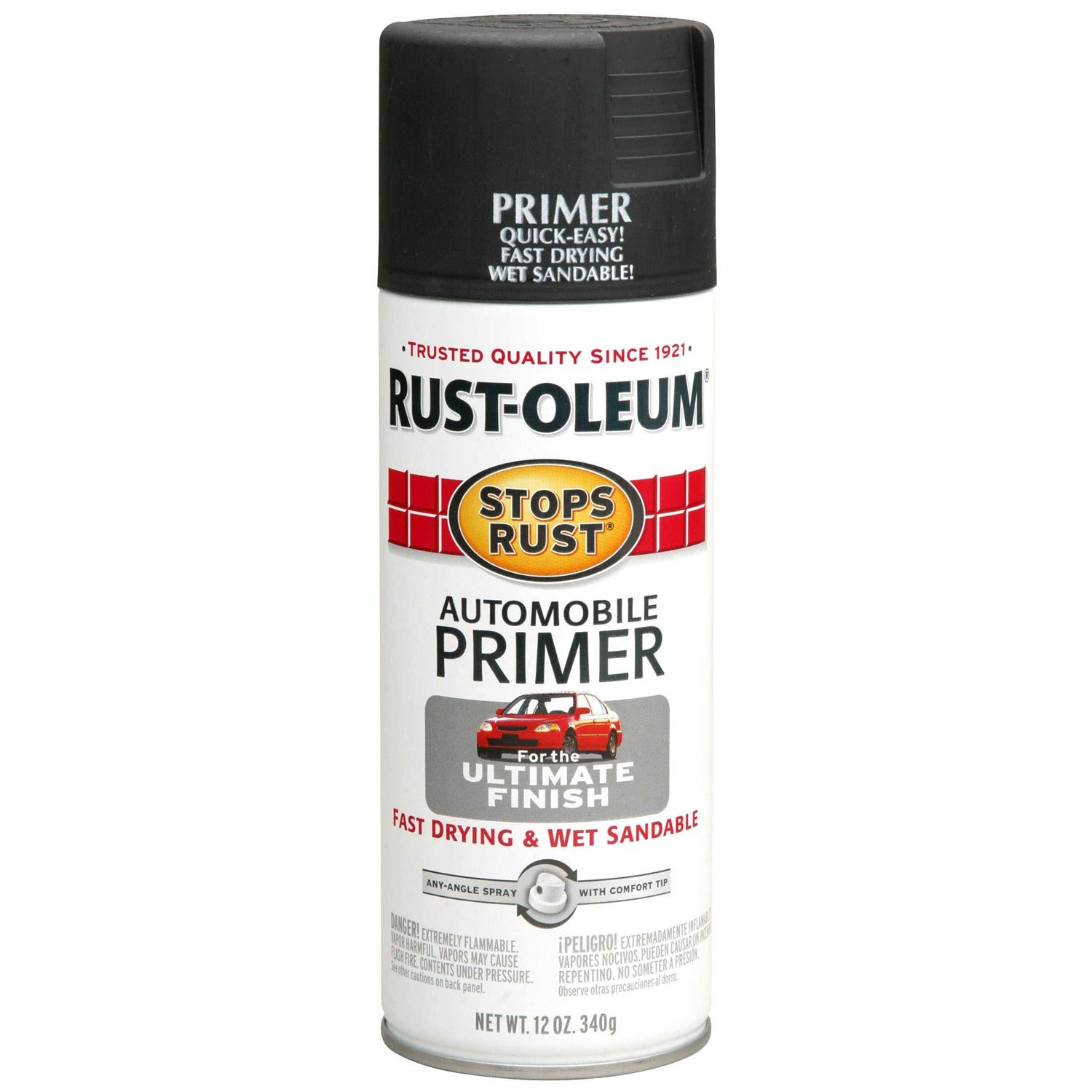Rust-Oleum Automotive Primer Spray is a tough, rust-inhibiting base that works well under most automotive paints and Rust-Oleum Stops Rust finishes. Spray on and wait just 15 minutes before you apply a top coat or wet sand to an ultrasmooth finish. Safe to apply on all but galvanized metals. It features a comfort tip with a wider finger pad to reduce fatigue cause by continuous spraying.