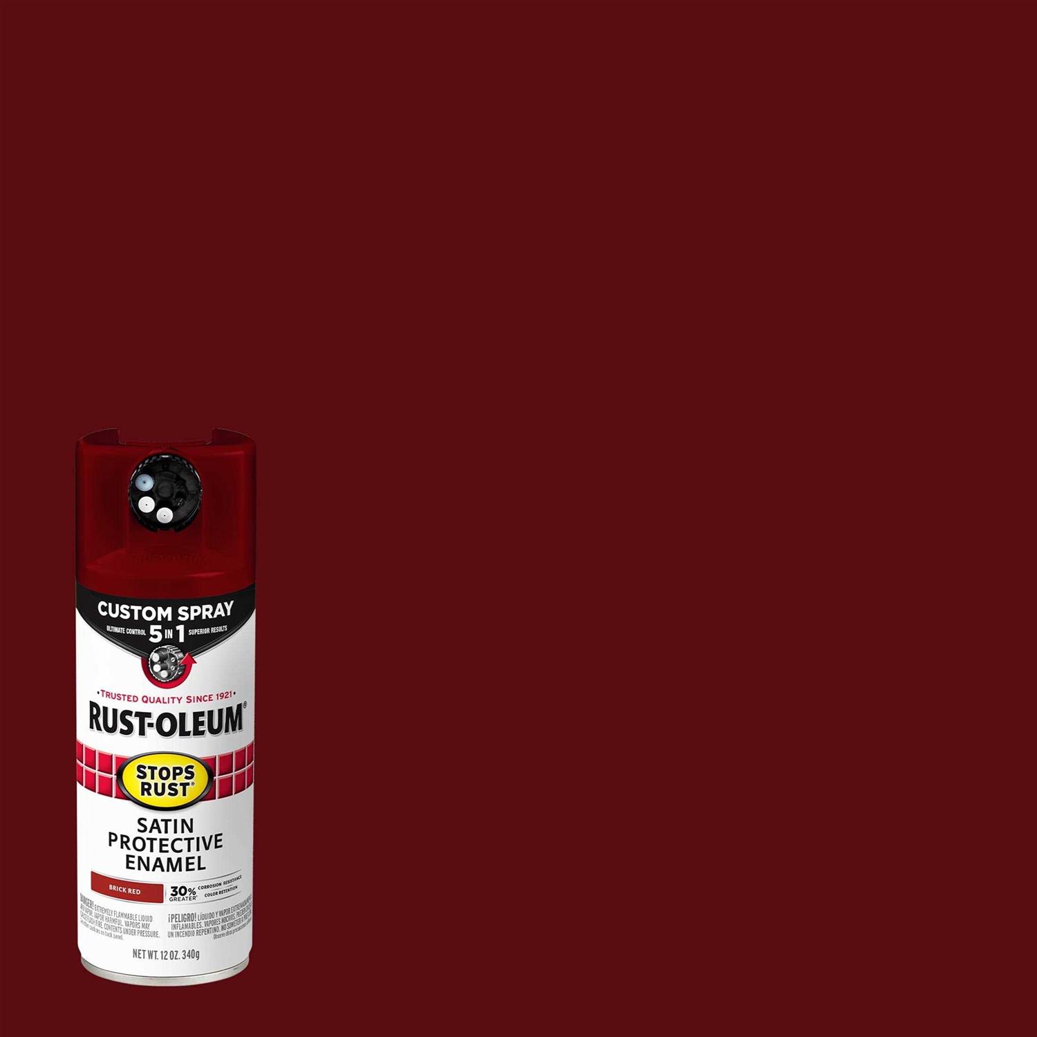 Brick Red, Rust-Oleum Stops Rust Custom Sprays 5 in 1 Satin Spray Paint- 12 oz, 385008: Allows you to choose between 5 different spray patterns for ultimate control and confidence over your next project. Available in gloss, semi-gloss, satin, and flat sheens. Ideal for superior protection on interior and exterior wood and metal surfaces. The advanced Stops Rust formula provides 30% greater corrosion resistance and color retention compared to original matching Stops Rust colors with standard tip.