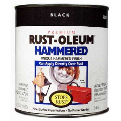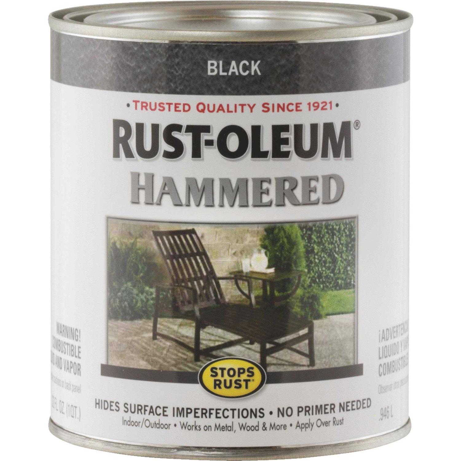 Rust-Oleum · Exterior · Interior · Metal · Can · Black · Oil Based.Rust-Oleum Stops Rust Hammered hides flaws and imperfections found in scratched, rusted or pitted metals. Apply directly over rust. Works on wheelbarrows, lighting fixtures, wheel rims and other metals as well as wood, concrete and masonry.