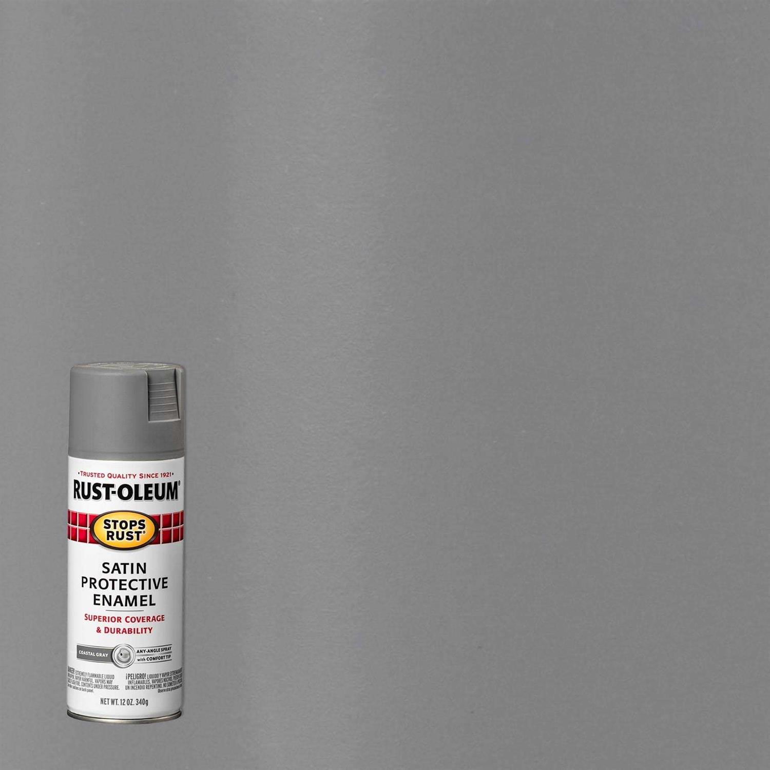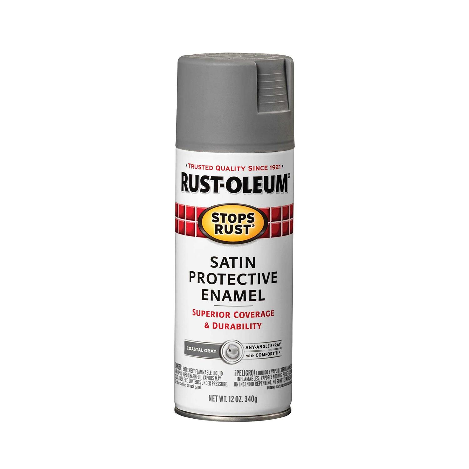 Rust-Oleum 312819 Stops Rust Satin Spray Paint, Coastal Gray, 12-oz.