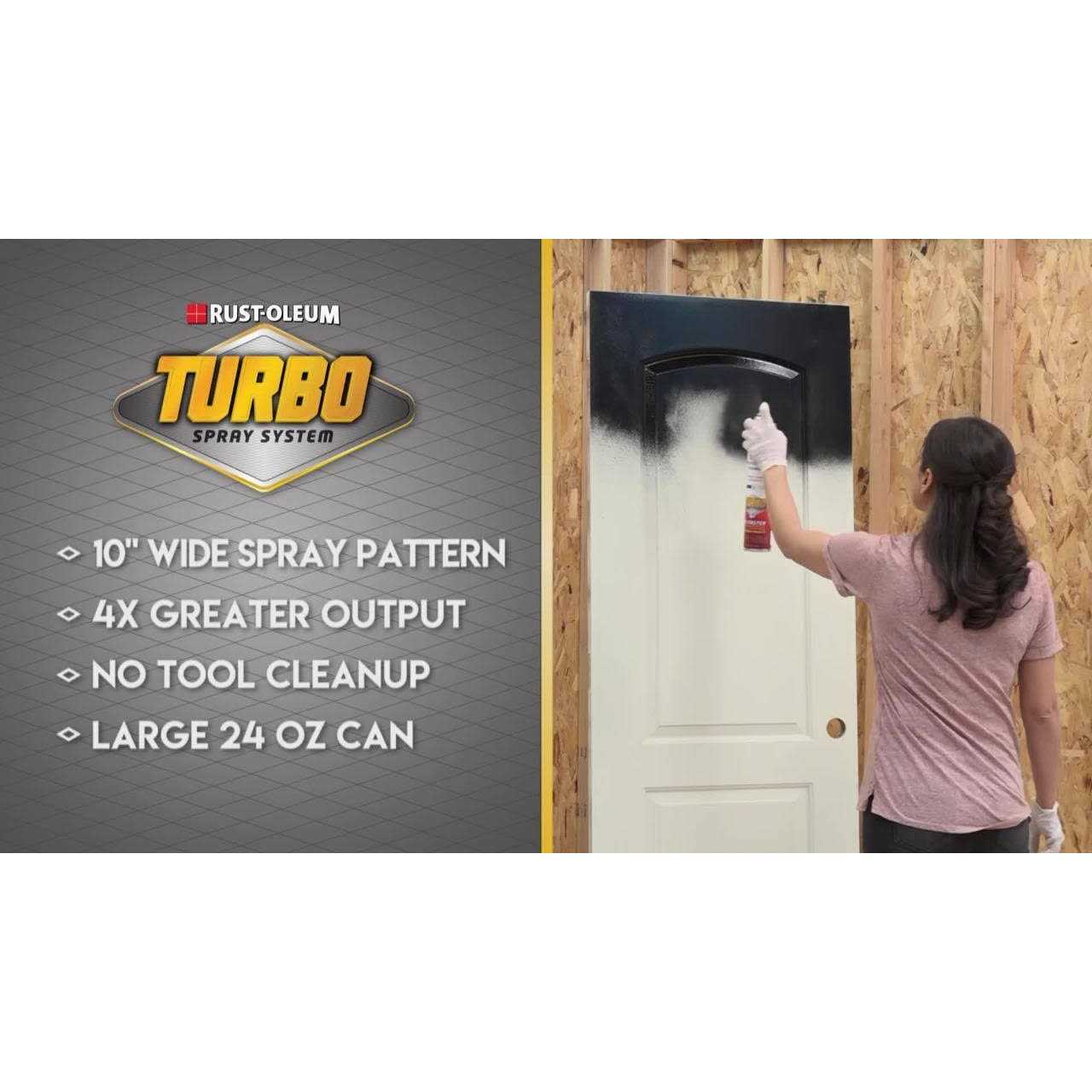Stops Rust Turbo Spray Paint features a 10 inch fan, making large jobs a breeze! Perfect for outdoor concrete, wood, masonry and metal surfaces such as sheds, chairs, fences and more. Larger 24 oz. can offers up to 20 sq ft of coverage without extra weight. Easy to use comfort tip allows for reduced finger fatigue from continuous spraying. With Stops Rust protection in a mega sized can, the wider finger pad provides a comfortable spraying experience to finish your project faster with less stress and strain. Apply more paint in less time with the Stops Rust Turbo Spray System that paints 4X faster.