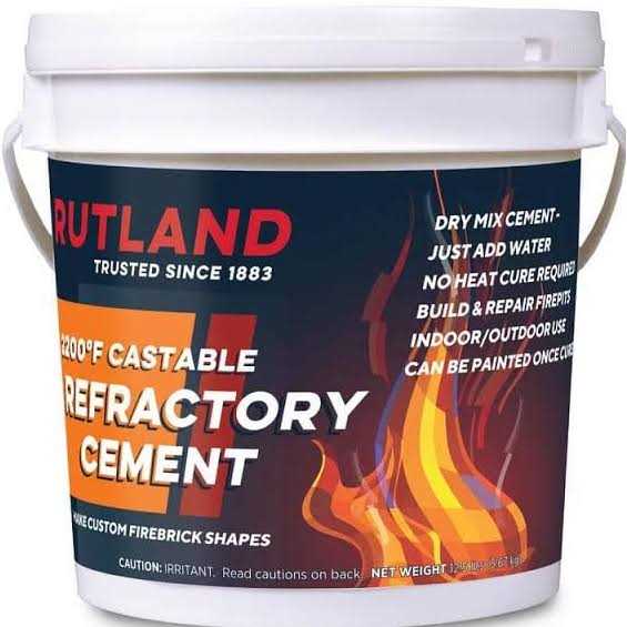A dry mix cement just add water sets and dries as hard as fire brick. Use to cast custom shapes replace worn-out fire brick or fill large holes in masonry firebox or as a solid stone bed. May also be used to build or repair outdoor fire pits. For indoor or outdoor projects. Rated to withstand up to 2200 degreef. Does not require heat to cure. Minimum 24 hour dry time. May be painted when dry. Approximate coverage: 12 1/2 lbs casts a block 12in x 12in x 1 1/2in. Tan.