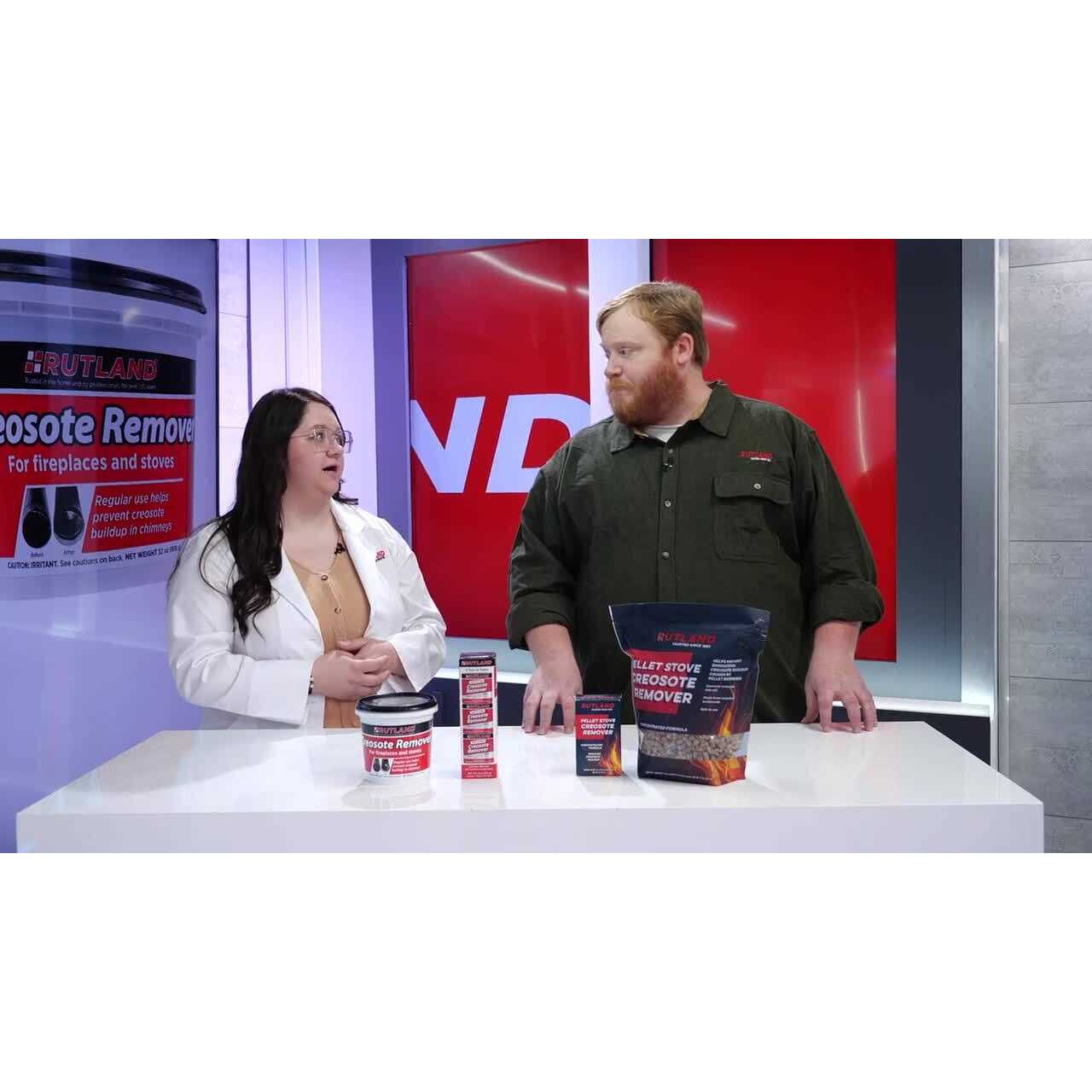 Using our Rutland Products you can Keep your Fire-Burning Equipment operating at peak eficiency. Repair and maintain your fireplace, chimney, wood stove or gas stove like new Liquid Creosote Remover. RUTLAND Liquid Creosote Remover is great for all stove and flue types, but best for pellet stoves where granules fall through the burner pan. Spray on an existing fire or pre-treat fuel before adding to a fire to make a chimney safer and more efficient. This heat-activated liquid evaporates while removing creosote buildup from inside a chimney. As the chemicals penetrate the sticky, tar-like creosote, it turns into a loose, powdery, non-adhering ash that can easily be brushed away. Weekly use will prevent further creosote from forming. Safe for use in all types of chimneys, fireplace inserts, wood stoves, airtight stoves, and fireplaces. Will not harm catalytic converters. Features 32 fl oz Spray Bottle Indoor use only Made in the USA WARNING: This product can expose you to chemicals including Soot, which is known to the State of California to cause cancer.