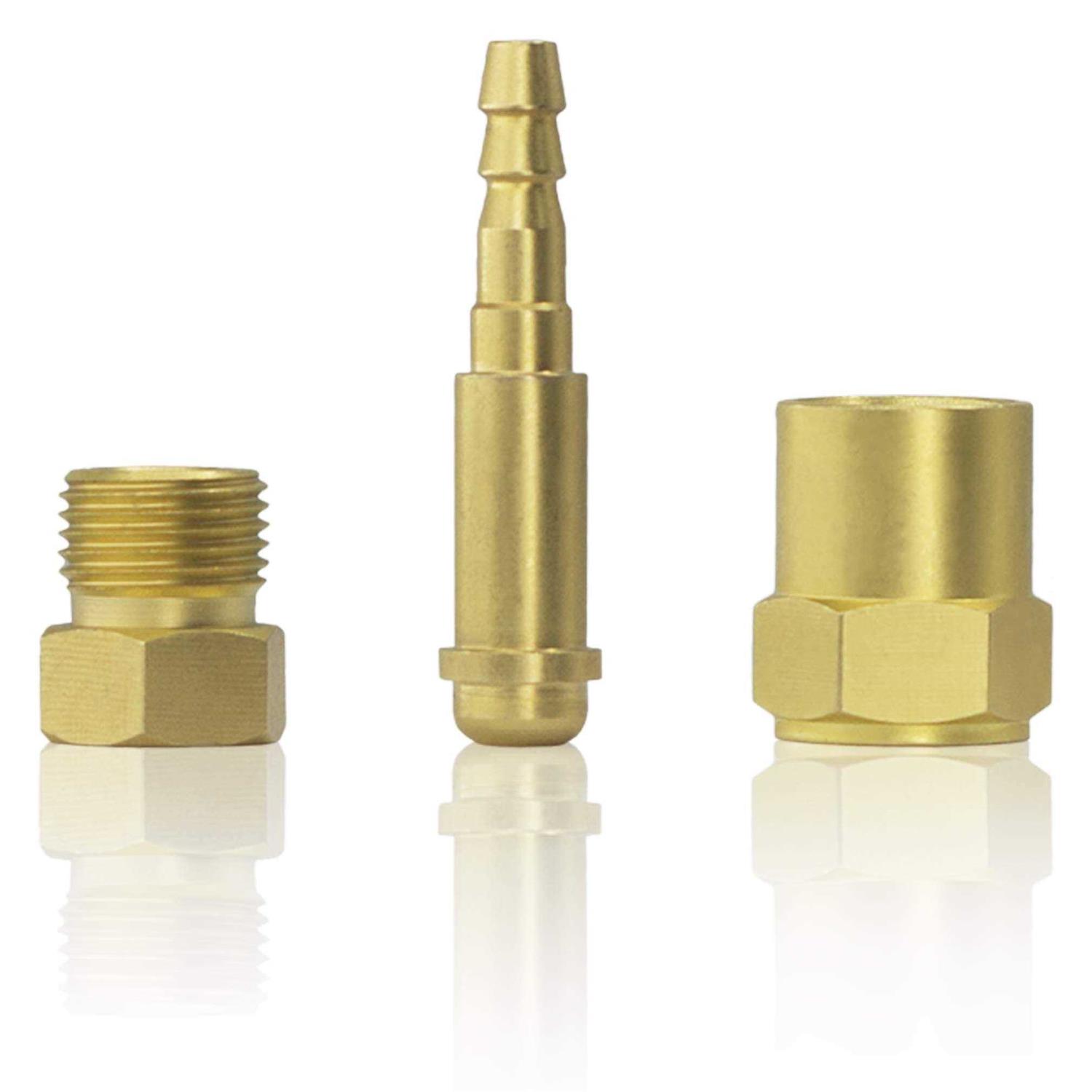- 4. OUTPUT:Will fit both the female 9/16″ x 18 nut or the male 5/8″ x 18 fitting.It also comes with a standard 1/4″ barbed fitting.