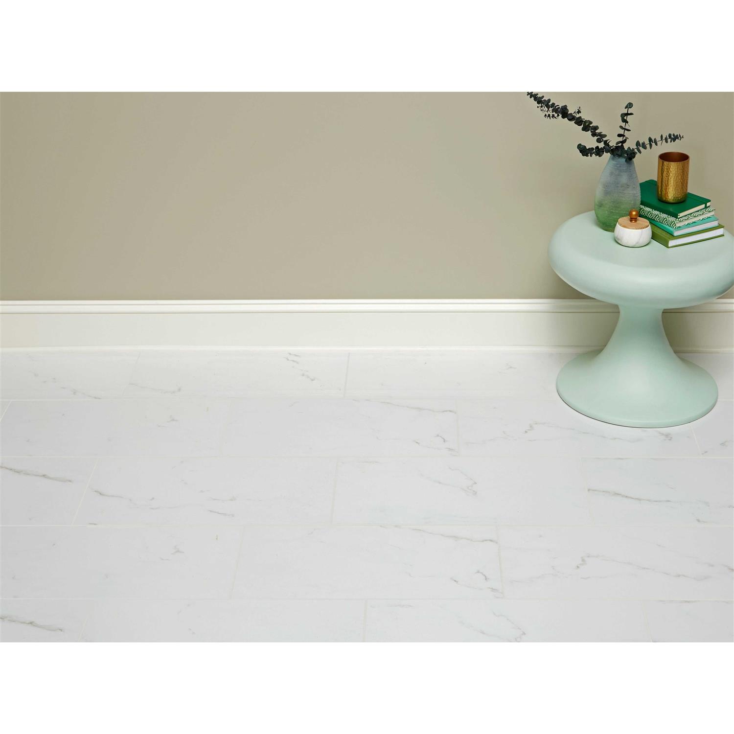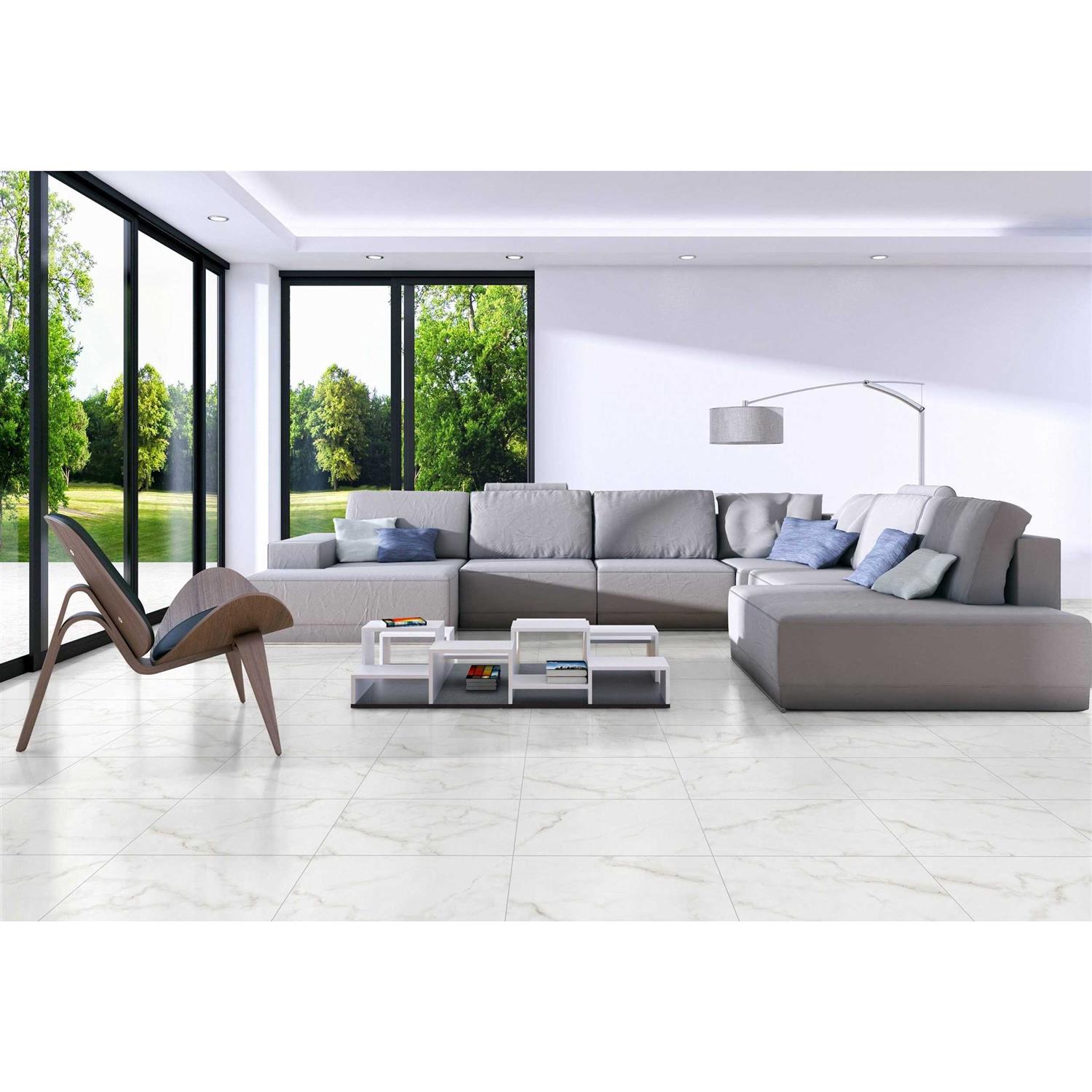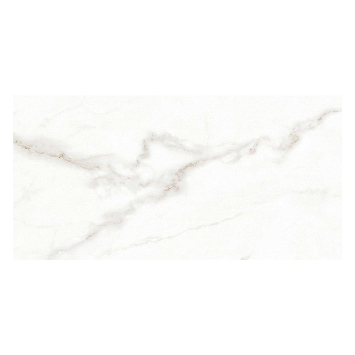 With a polished or high gloss finish, this white Venato II Polished Porcelain Tile is 12 x 24. This tile has inkjet print quality, which produces a high definition image that thoroughly covers the tile and results in a natural, authentic look. Straight or rectified tiles are cut so that they can be installed with minimal grout lines and give a very clean look. This tile is made in the USA. Known for high quality design and efficient production, tiles made in the USA are excellent options for any floor or wall. Offering modern to classic appeal, our polished porcelain and ceramic tiles flaunt a shiny, high-gloss finish.