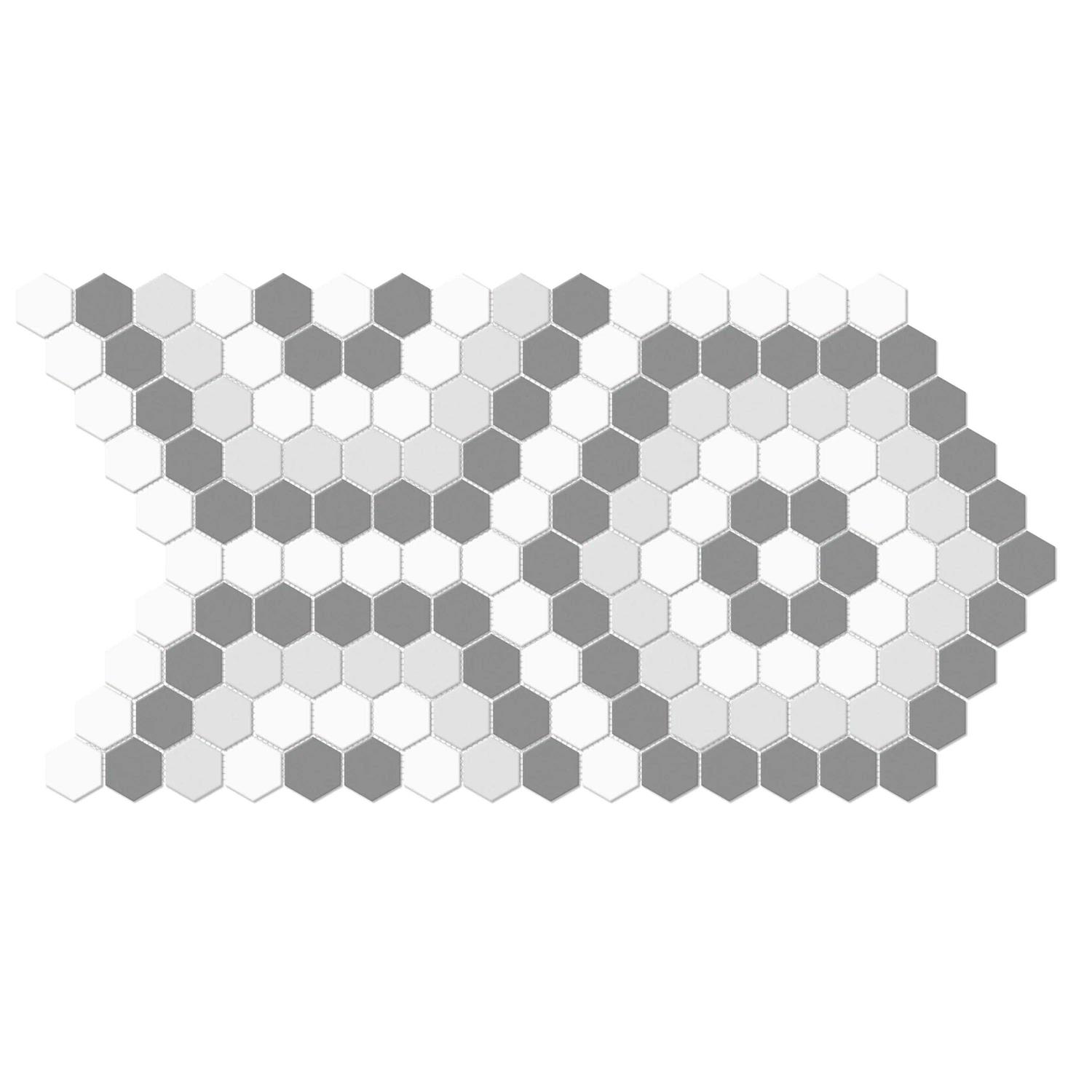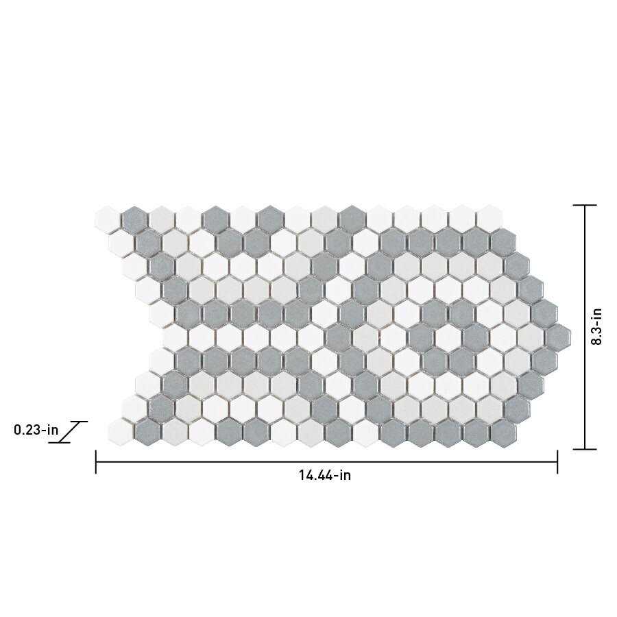 Glazed porcelain tile from the Hudson collection is dense, durable and moisture resistant. Cool color tones update any space with a clean look in any decor from contemporary to traditional. Hexagon pattern with mesh backing for easy installation. Impervious tile is suitable for use in wet rooms, such as bathrooms. Ideal for use in bathrooms, kitchens, backsplashes and accent walls.