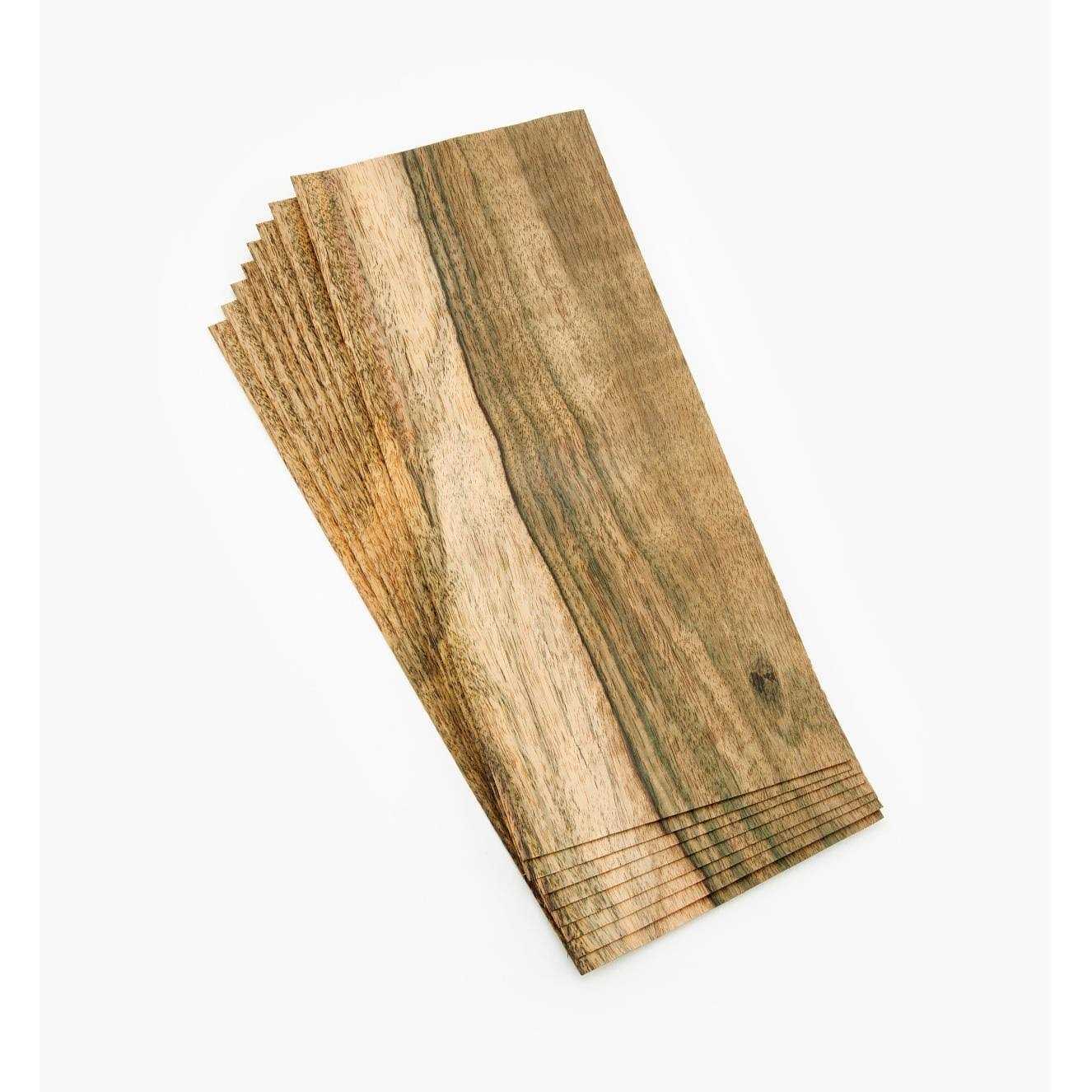 Suitable for marquetry, furniture accents, or projects such as jewellery boxes and clocks, these top-grade veneer sheets are sequence matched for consistent color and grain. High yield, they are generally free of cracks and knots, though burls may have small voids or bark inclusions. The 0.025″ thick sheets have been trimmed to provide straight edges. Available in two sizes; sheets in the 3 sq.ft. packs are 4 1/2″ to 6 1/2″ wide by 12″ long; those in the 8 sq.ft. packs are 8″ to 12″ wide by 18″ to 24″ long. Dyed veneers are made from various hardwoods. Convenient and economical, they make working with veneer more accessible. Actual colours may vary depending on your screen settings.