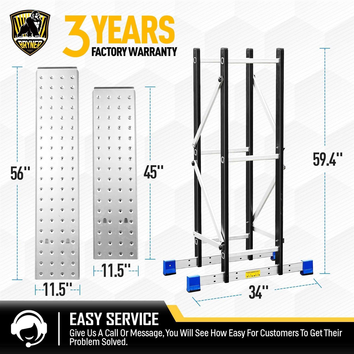 Bryner Scaffolding Platform, Work with 7 in 1 Multi-Purpose Folding Ladder, Supporting Rack and Steel Trays Work Platform