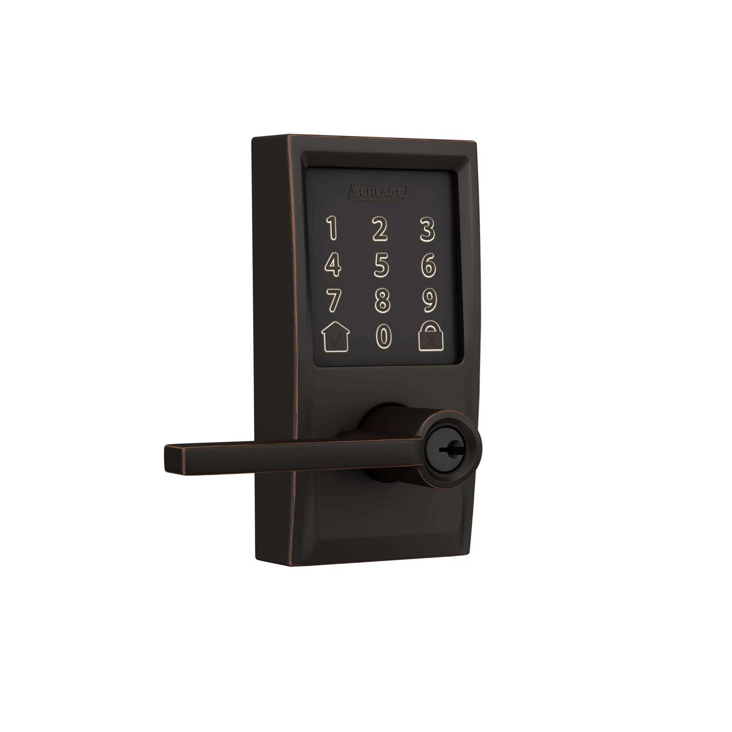 Schlage FE789WB-CEN-LAT Encode WiFi Enabled Electronic Keypad Latitude Door Lever with Century Trim Aged Bronze Leverset Keyless Entry Electronic