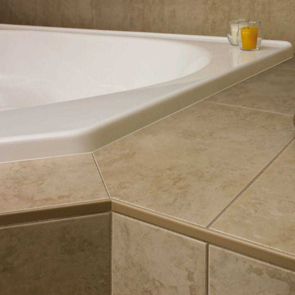 The Jolly profile is designed to finish and protect tile edges on walls and countertops. It is ideal for creating decorative transitions on walls. Jolly can be used to finish the edge of a tiled backsplash or the edge of a bathtub surround. Jolly has an integrated joint spacer which ensures a uniform grout joint between the tile and profile.