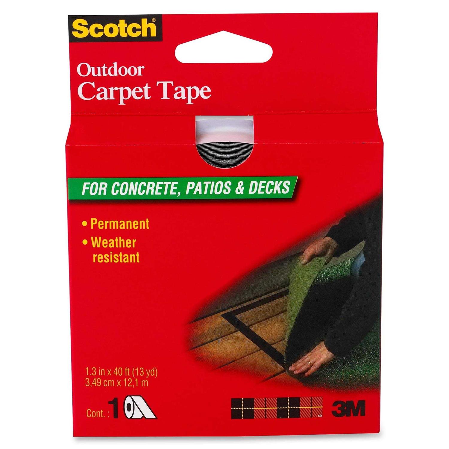 Scotch Reinforced Outdoor Carpet Tape 3M is a diversified technology company serving customers and communities with innovative products and services. 3M is committed to actively contributing to sustainable development through environmental protection, social responsibility and economic progress. Weather resistant and reinforced for added durability. It’s ideal for boats, recreation vehicles, patios, decks and garages. Use it for outdoor installation of carpets and artificial turfs on wood, concrete, ceramic tile and other tile floor surfaces. This tape comes on a 40 foot roll and is 1.375 inches in width. It will not tear or stretch. 3M Rug and Carpet Tapes come in a variety of styles and sizes. Use them for holding rugs and carpets to a variety of subfloors, including indoor and outdoor carpets, artificial turfs.