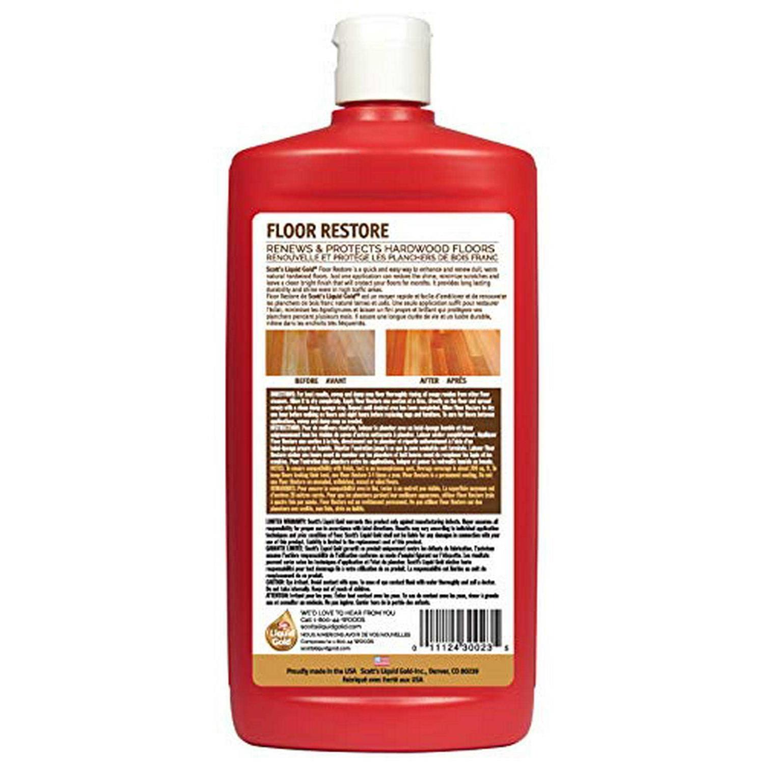 Scott’s Liquid Gold Floor Restore is a quick and easy way to enhance and renew dull, worn natural hardwood floors. Just one application can restore the shine, minimize scratches and leave a clean bright finish that will protect your floors for months. It provides long lasting durability and shine even in high traffic areas.