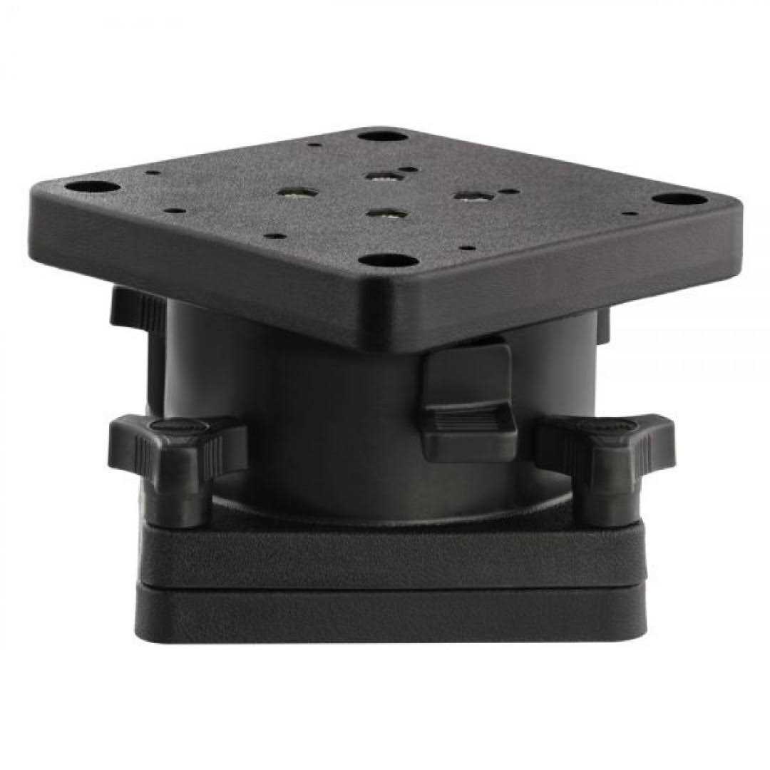 Provides 360 rotation to the downrigger. Sixteen locking positions and four stainless mounting bolts for quick removal. Separate base allows removal from boat. Nylon bearing provides lifetime of trouble free operation. Nylon and stainless construction. Includes stainless mounting hardware. Mounting plate dimensions 51/2 X 51/2. Bolting dimensions 41/2 x 31/2.