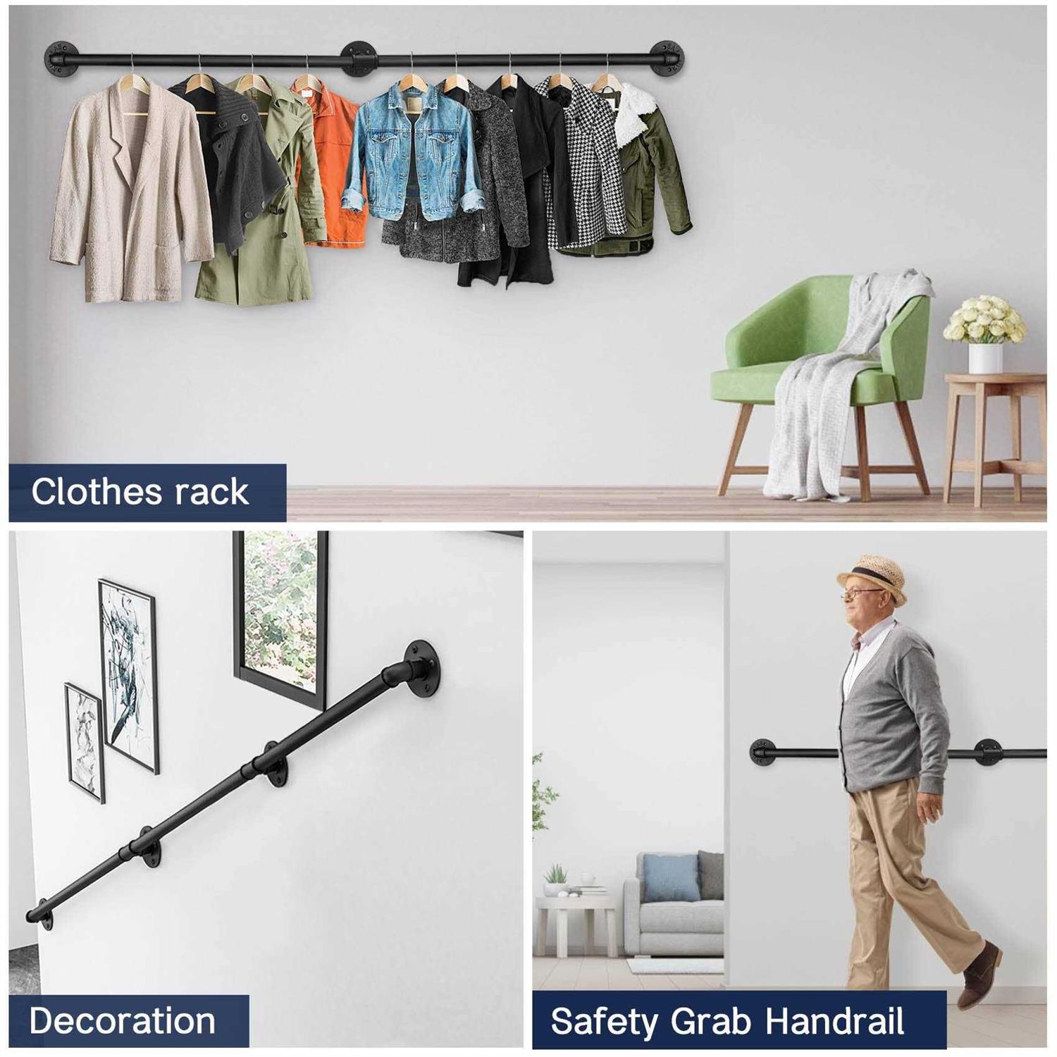 Handrails for indoor stairs are made of high quality stylish matte black wrought iron pipe ,durable, and sturdy. – Easy to clean for its Eco-friendly high temperature baking paint surface. – Not easy to rust. Staircase handrail Pipe OD is 31/32”(25mm). More comfortable grip. – Metal railing is divided into 2 sections. – The full length, including flanges at both ends, is 10 ft. Our stair railings are wildly used in residential apartments, luxury villas, office buildings,hotel and so on. – A great choice for a fashion handrails on your staircase,cloakroom,balconies, decorative rooms. Stair railing kit comes with all screws you will need. – It can be quickly tightened and assembled. – Easy to nailed into wood, concrete walls, vinyl, brick, stucco with expansion screws. Any question, please feel free let me know.