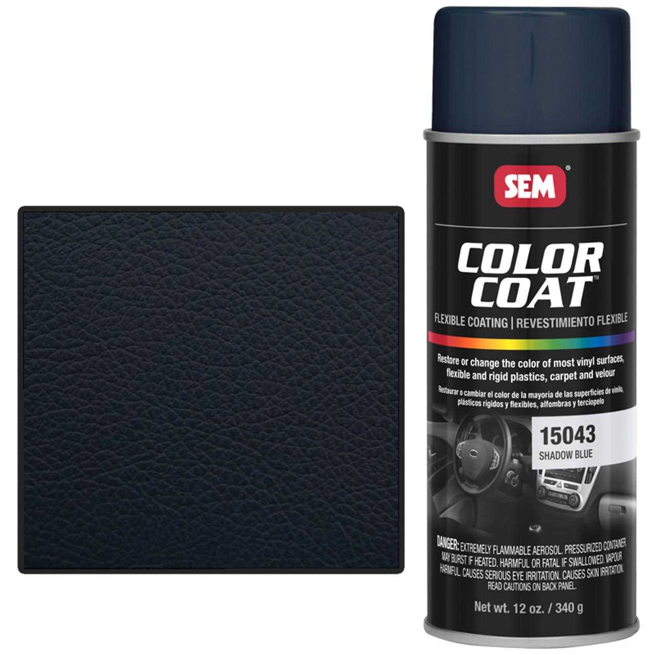SEM Color Coat Aerosols are formulated to match, restore or change color on most vinyl surfaces, flexible and rigid plastics, carpet and velour. Fade resistant and flexible, Color Coat is not a dye but a permanent paint coating. This OEM Recommended coating has superior adhesion, flexibility and hiding capabilities. It will not crack and dries quickly to touch, however it takes 24 hours to completely cure.