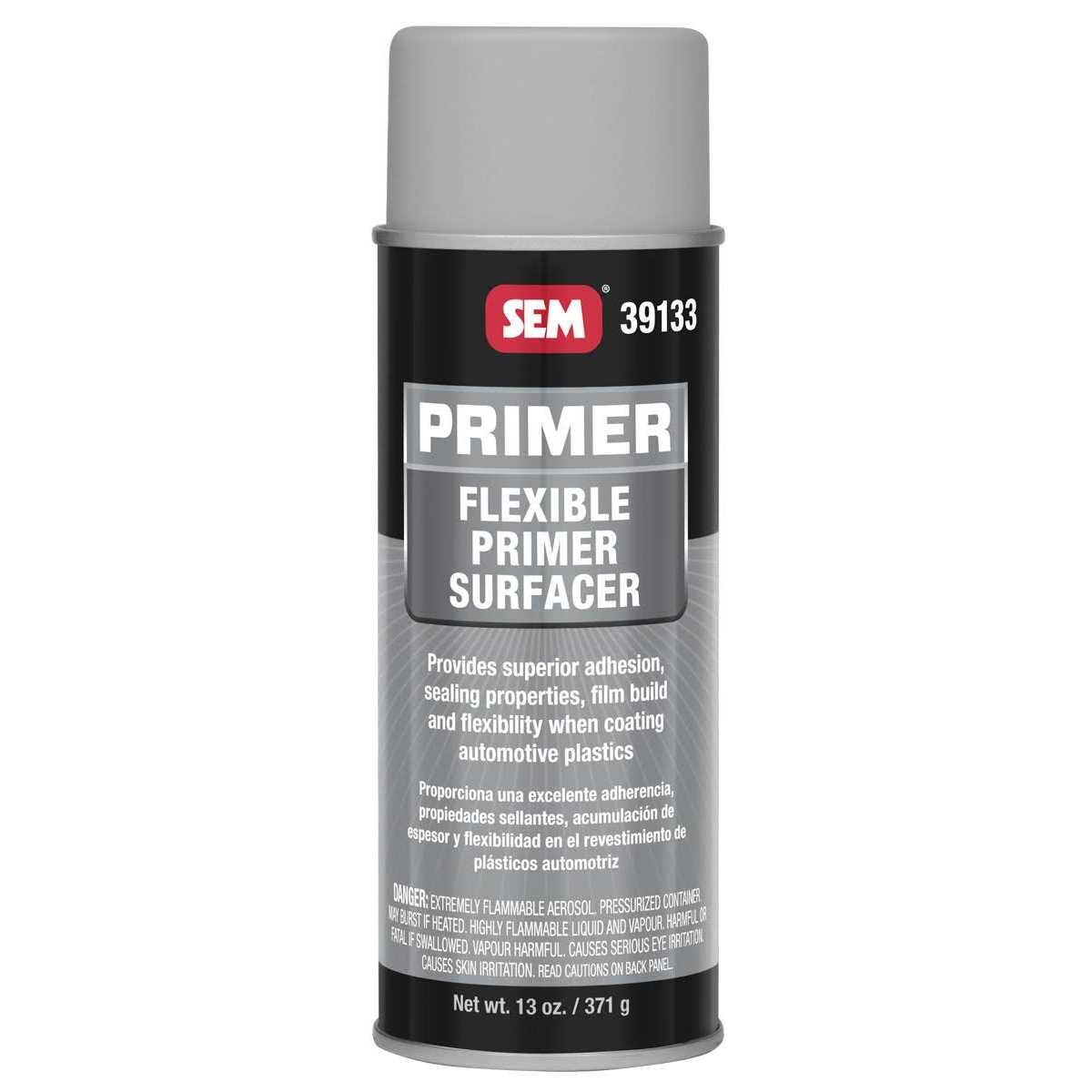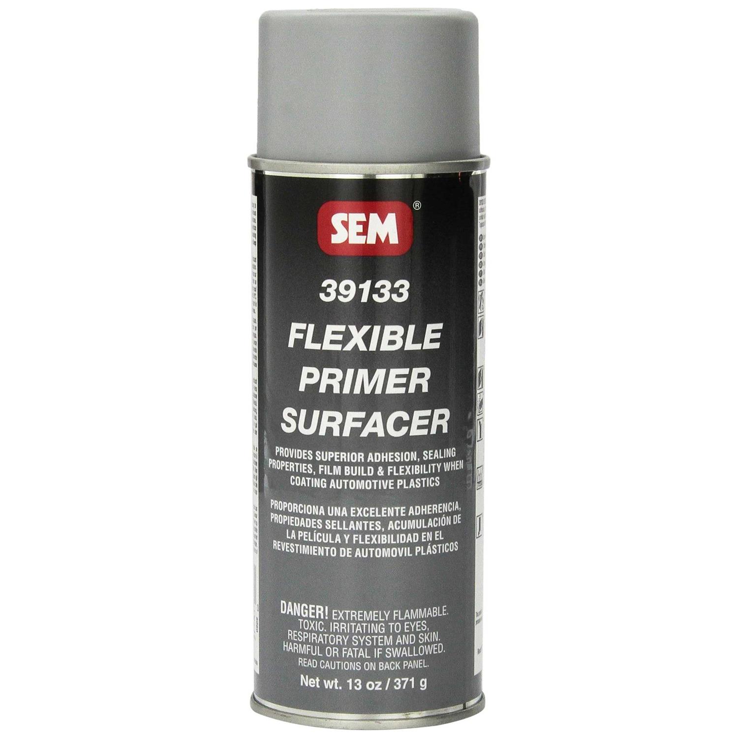 SEM Flexible Primer Surfacer provides superior film build and flexibilityReady to spray; Quick drying; Easy to sand; Flexible formulation; Topcoat with most refinish materials; Flexible Primer Surfacer is a flexible, sandable primer capable of adhering to difficult plastics and hiding minor surface defects. This convenient aerosol primer is ideal for flexible bumper repairs. Can also be used on urethane’s, plastics, and other substrates. Builds quickly thanks to its high solids formulation. Sands easily. Compatible with most automotive finishes. One can covers about 10 square feet.