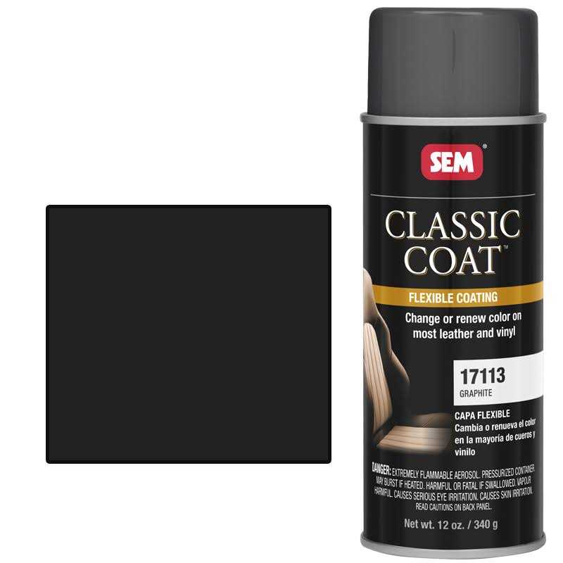 SEM Color Coat Aerosols are formulated to match, restore or change color on most vinyl surfaces, flexible and rigid plastics, carpet and velour. Fade resistant and flexible, Color Coat is not a dye but a permanent paint coating. This OEM Recommended coating has superior adhesion, flexibility and hiding capabilities. It will not crack and dries quickly to touch, however it takes 24 hours to completely cure.