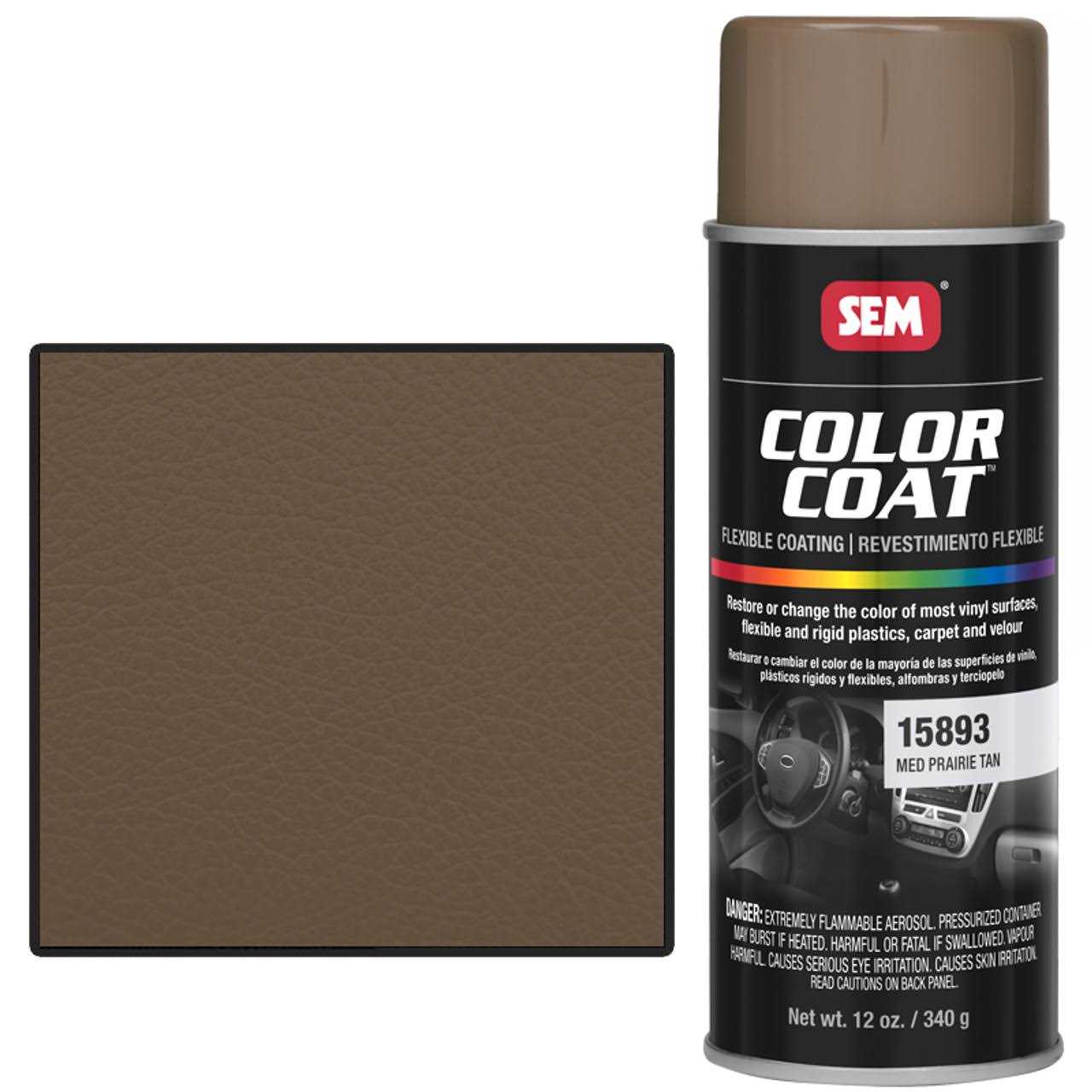 SEM Color Coat Aerosols are formulated to match, restore or change color on most vinyl surfaces, flexible and rigid plastics, carpet and velour. Fade resistant and flexible, Color Coat is not a dye but a permanent paint coating. This OEM Recommended coating has superior adhesion, flexibility and hiding capabilities. It will not crack and dries quickly to touch, however it takes 24 hours to completely cure.
