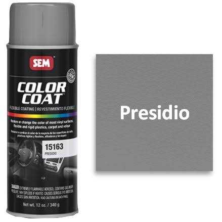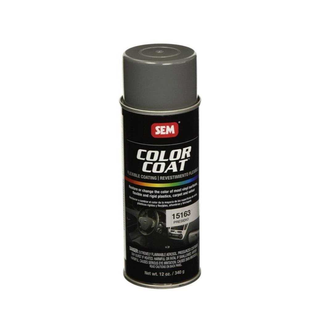 SEM Color Coat Aerosols are formulated to match, restore or change color on most vinyl surfaces, flexible and rigid plastics, carpet and velour. Fade resistant and flexible, Color Coat is not a dye but a permanent paint coating. This OEM Recommended coating has superior adhesion, flexibility and hiding capabilities. It will not crack and dries quickly to touch, however it takes 24 hours to completely cure.