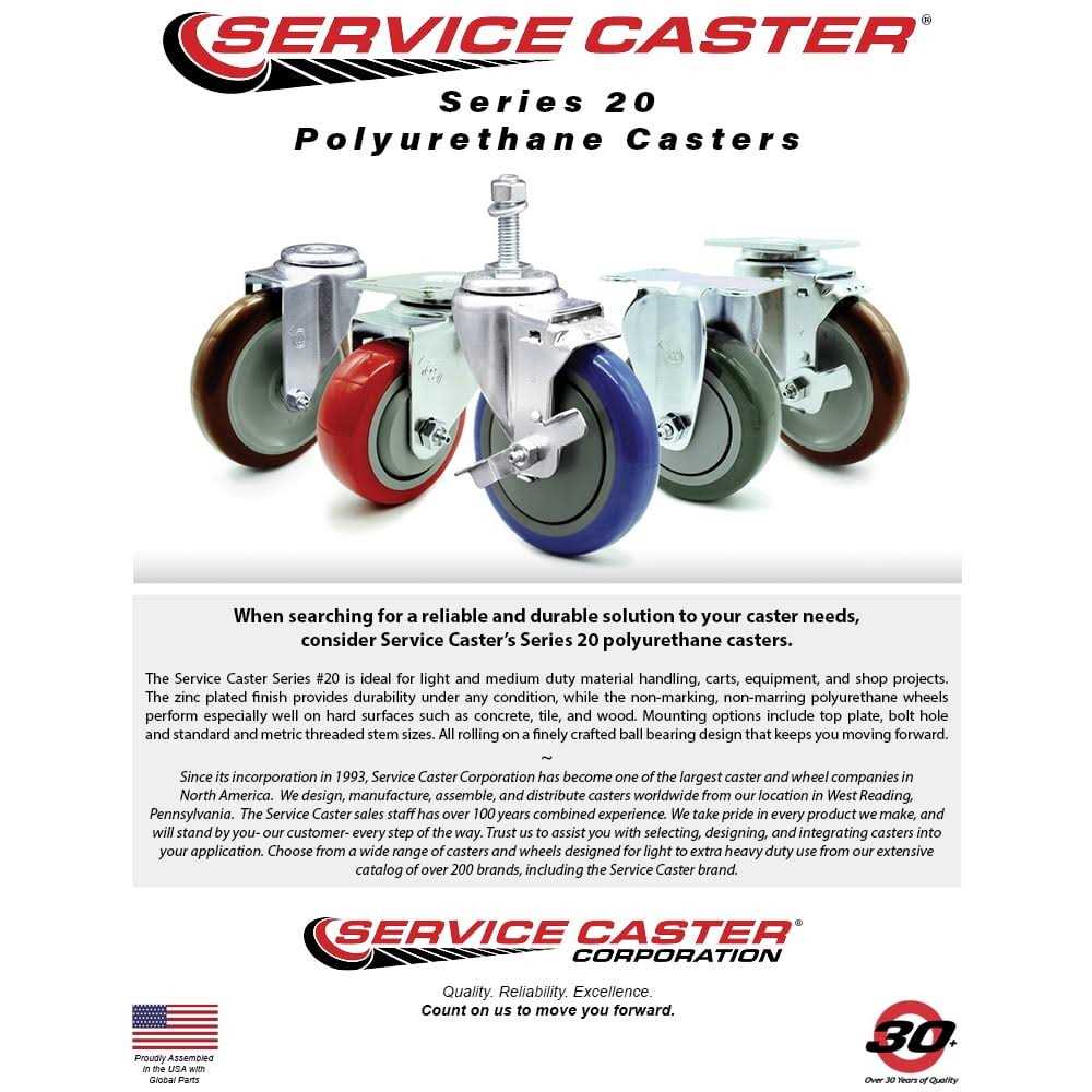 Service Caster Polyurethane Wheel Swivel Threaded Stem Caster Set Brake