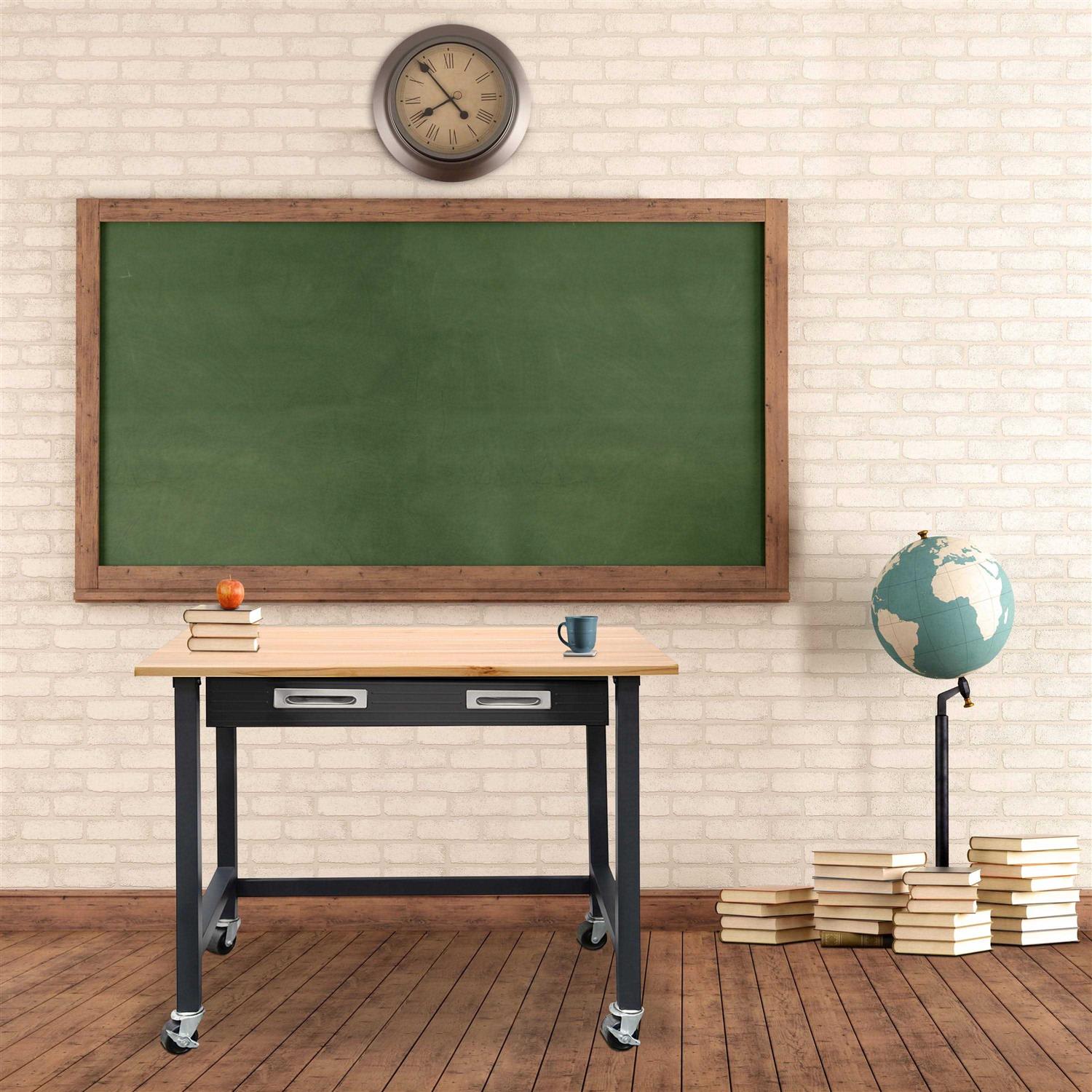 This versatile and multi-functional Seville Classics UltraGraphite Wood Top Workbench on Wheels with Sliding Organizer Drawer is constructed from industrial-strength powder coated steel. This durable workbench features a 1.5-inch thick, polyurethane-coated, solid wood top and 3 inch casters (two lock). The steel drawer features two stainless steel handles, commercial-grade ball-bearing sliders, and two adjustable dividers with seven mounting positions. Partition the drawer into different width compartments and store up to 60 lbs. tools, parts and more. The workbench measures 24.7 inches deep by 48 inches wide by 37.4 inches high. This must have workbench is ideal for use in garages, warehouses, mailrooms, basements or workshops. Solid wood top measures 1.5 inches thick Polyurethane-coated work surface for enhanced durability Single solid steel drawer with ball-bearing sliders and non-slip drawer liners Three drawer dividers with 7 mounting points Steel frame in graphite finish Includes four 3-inch casters, two of four lock Ideal for use in garages, warehouses, mailrooms, basements or workshops Dimensions 48″ W x 24.7″ D x 37.4″ H Weight capacity: 500 lbs., evenly distributed Weight: 83.6 lbs.