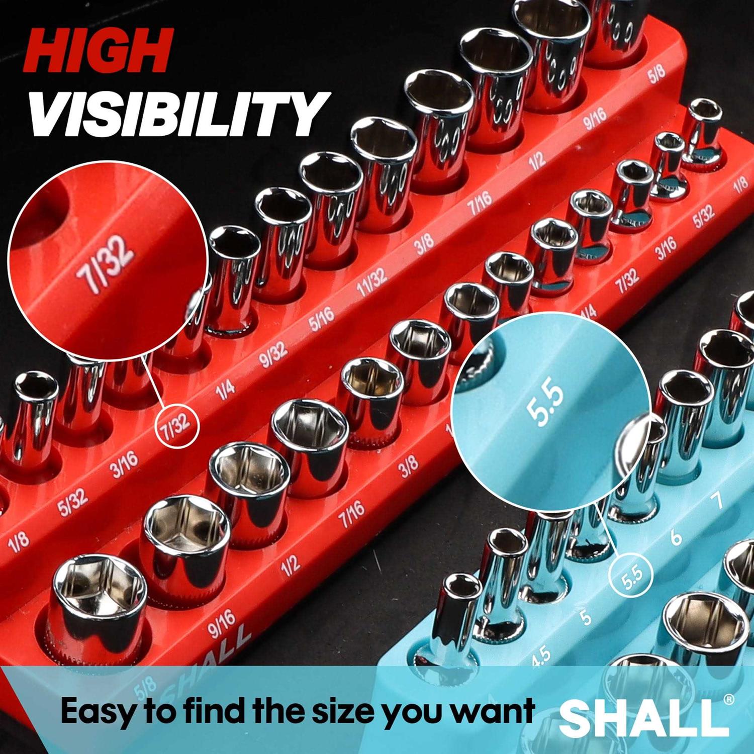 Shall 1/4 inch Magnetic Socket Organizer Set, 2-Piece SAE & Metric Socket Holders, Socket Tool Tray Storage Holds 52 Standard Sockets for Toolbox,