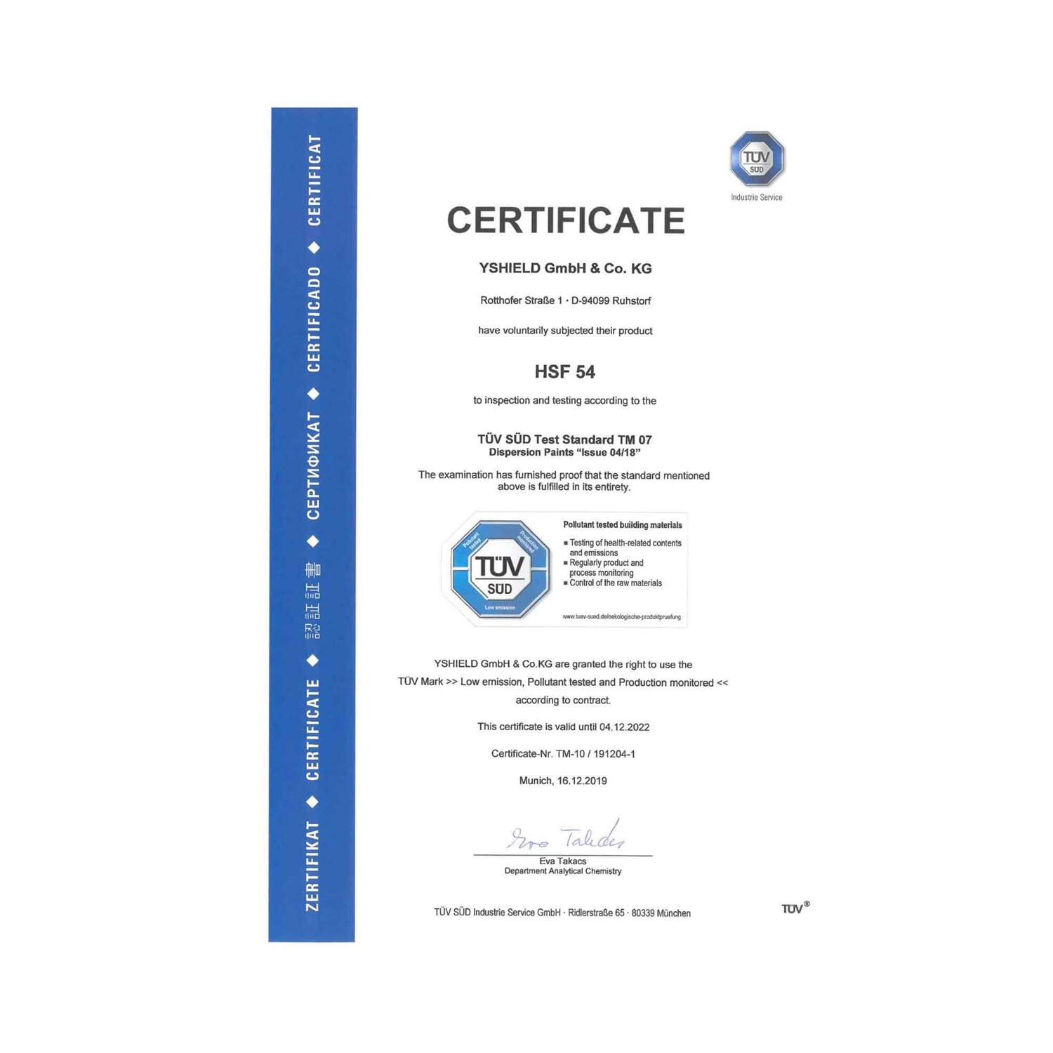 HSF54 is a standard paint with the best all round properties of YSHIELD paints. This paint can be used for almost all applications. Up to 67 dB. TÜV-SÜD certified. High shielding, adhesion and hardness. Multiple layers of this paint can be used to increase and enhance EMF and electrosmog shielding properties.