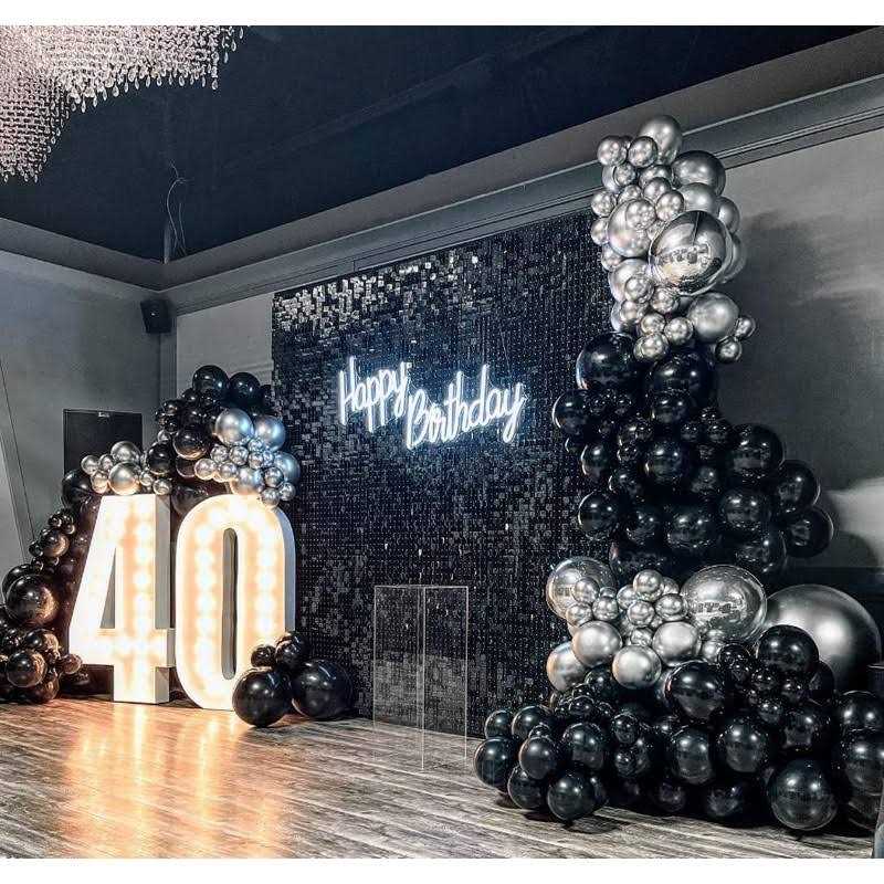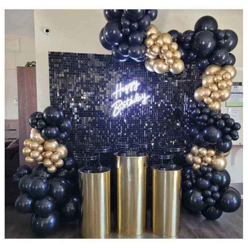 shimmerhoo Black Shimmer Wall Backdrop 24 pcs Decorations Panel Wedding