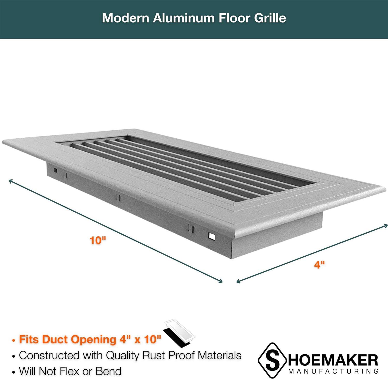Shoemaker Manufacturing, Cement Gray, 4×10, Premium Modern Aluminum Floor Grille, Heavy Duty Floor Grille
